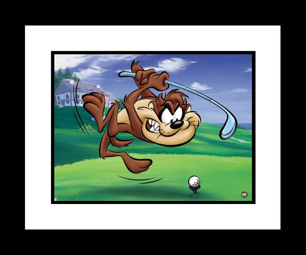 Taz Tee Off- A Fine Art Giclee featuring Looney Tunes character the Tazmanian Devil Perfect for any golfer fanatic's room. Limited Edition. Comes matted and framed with Certificate of Authenticity. Size 16x20. Edition Size 500.Looney Tunes is a Warner Bros. animated cartoon series which ran in many movie theatres from 1930 to 1969. It preceded the Merrie Melodies series and is Warner Bros.'s first animated theatrical series. The regular Warner Bros. animation cast also became known as the "Looney Tunes" “Giclée,†as a fine art term, has come to be associated with prints using fade-resistant "archival" inks (including solvent inks) and the inkjet printers that use them.