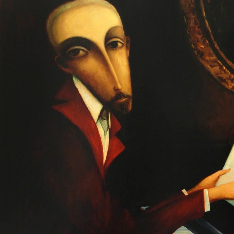 Combining time-honored religious icon painting with western style portraiture, the hauntingly beautiful art of Sergey Smirnov (1953-2006) is inspired by the 'Parsuna' art movement. "Tchaikovsky" is a limited edition mixed media on canvas, printed in 2004, numbered and hand signed by the artist. Includes Certificate of Authenticity! Measures approx. 40.5" x 30" (image).