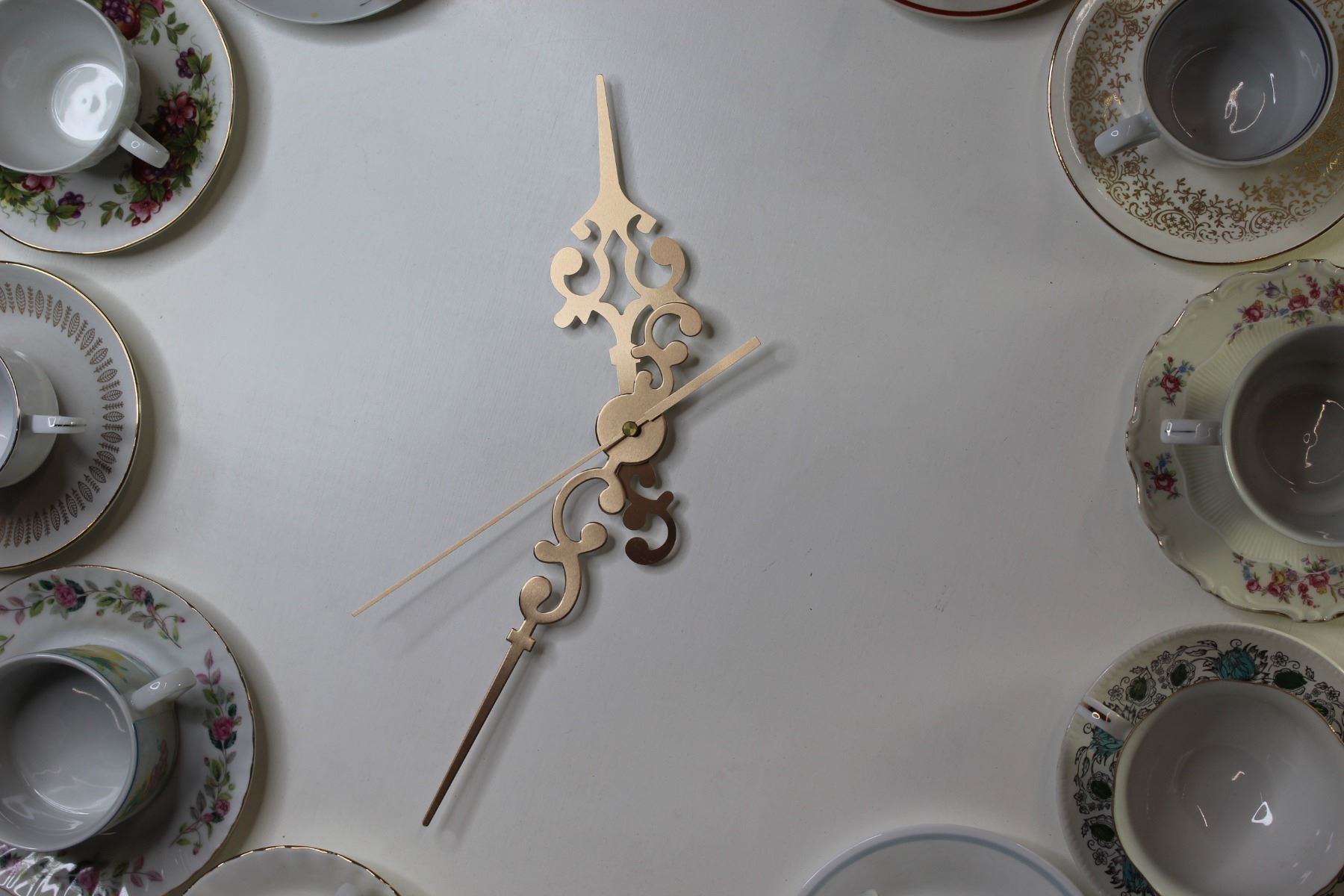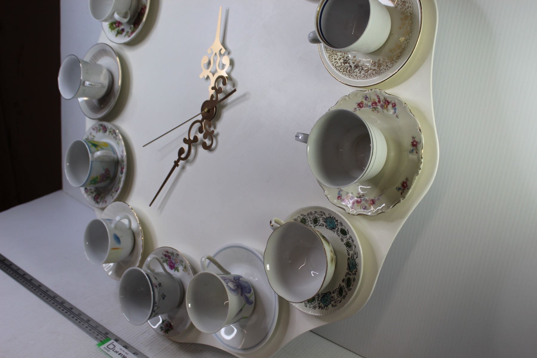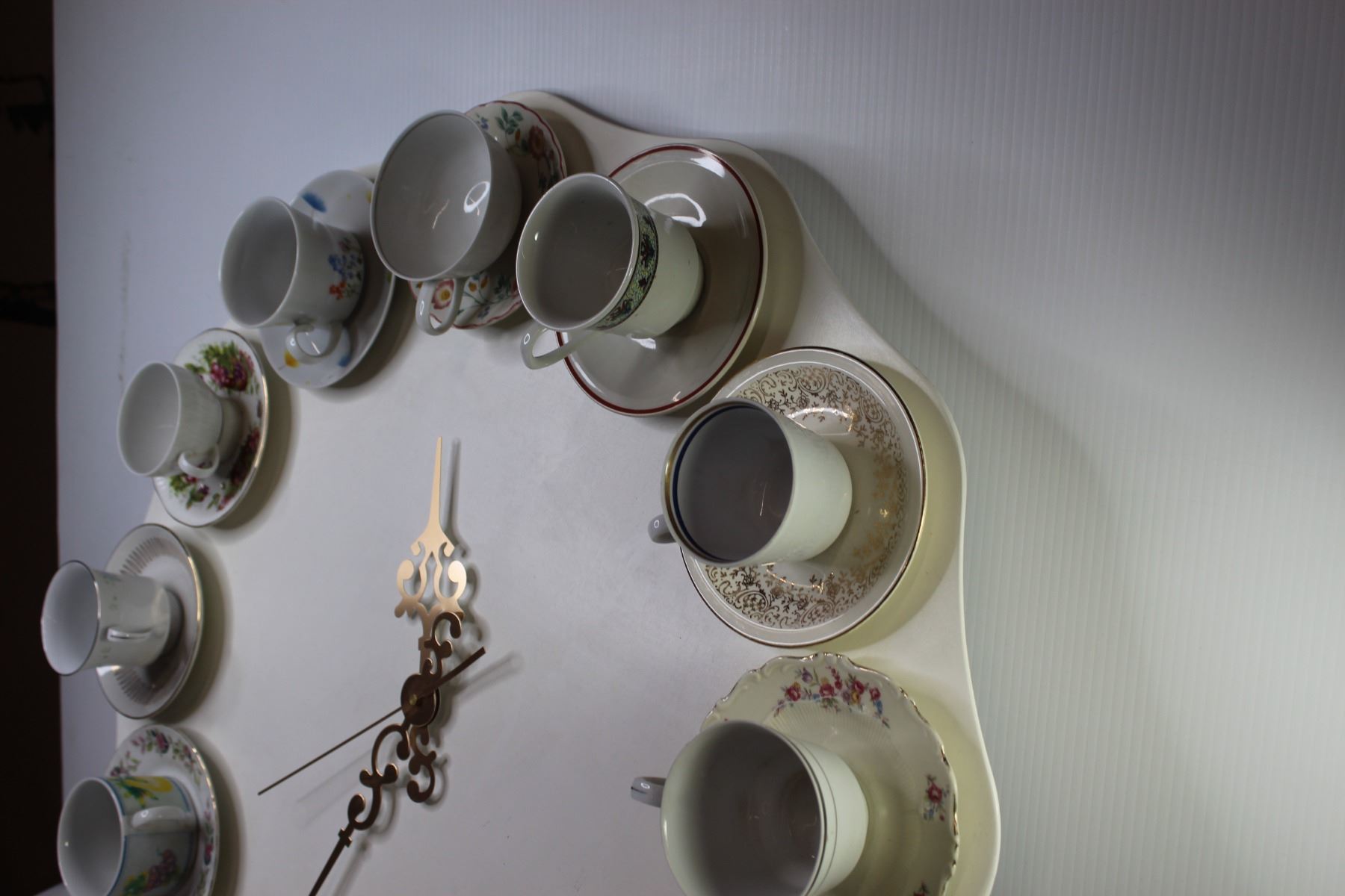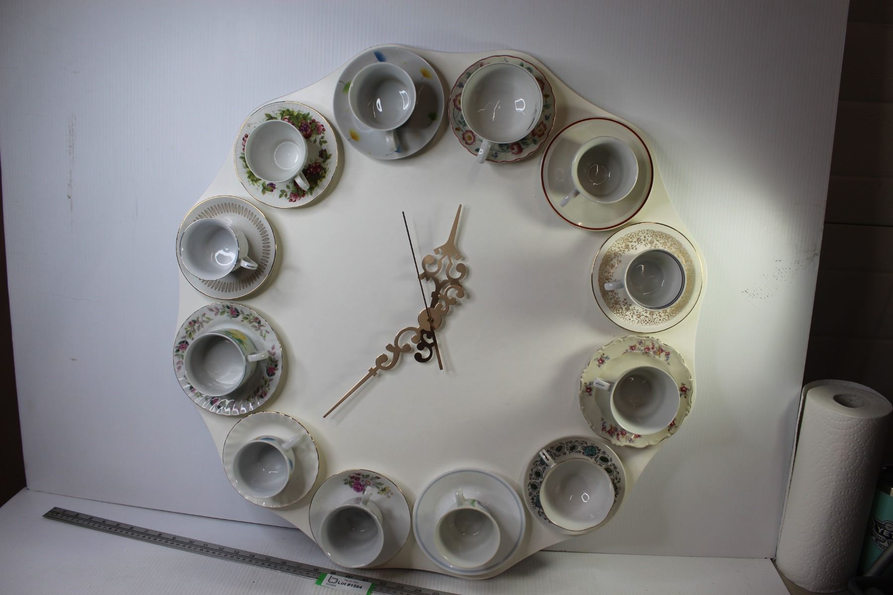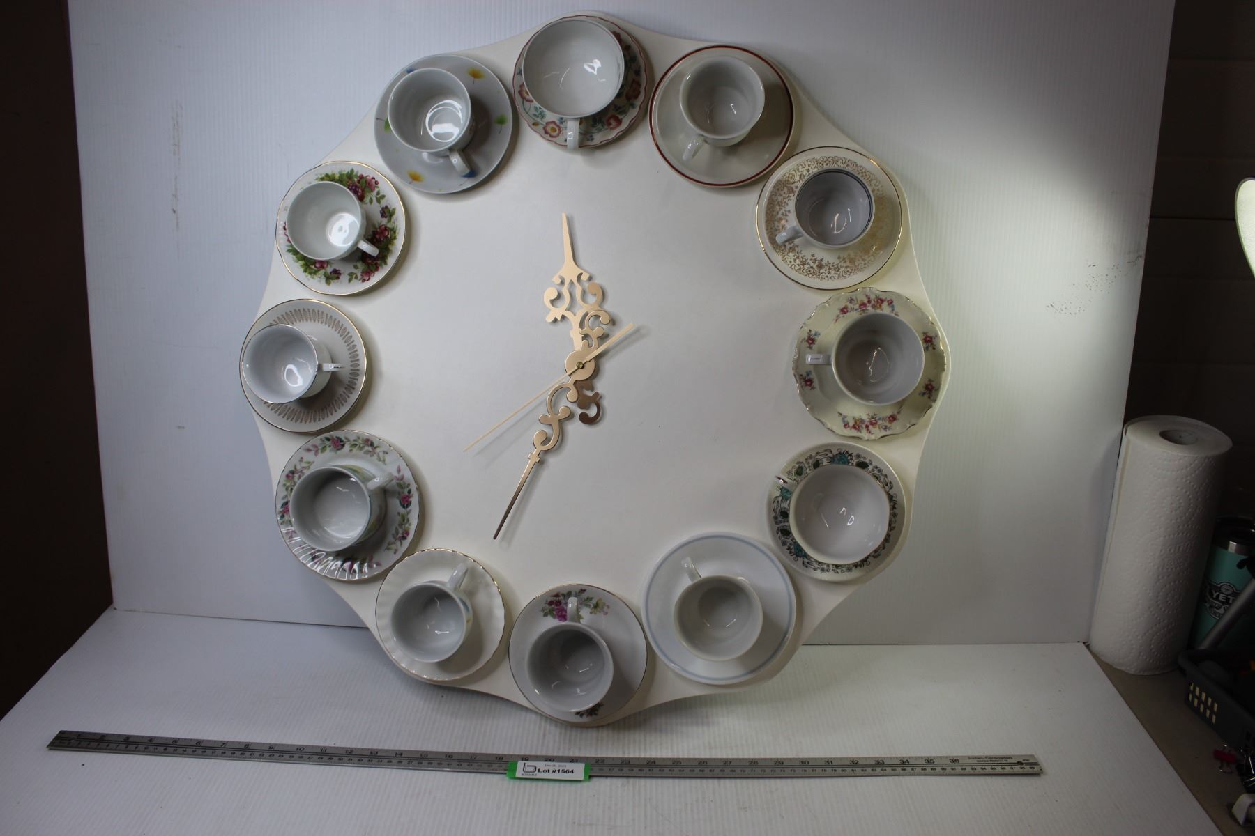 * Tea Cup Clock (working) - Cups & Saucers Glued to Board 30" Across