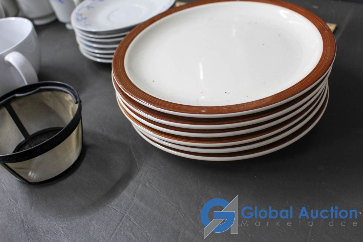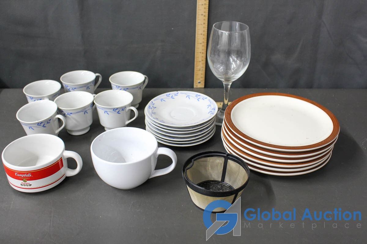 Tea Cup Set, 6 Plates, 2 Soup Cups, Coffee Filter & Wine Glass