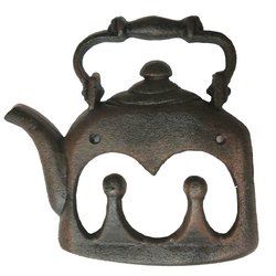 Tea Pot Key Hook Cast IroMeasures: Cast iron teapot wall plaque with 2 key hooks. Measures 6.5"X6.25".