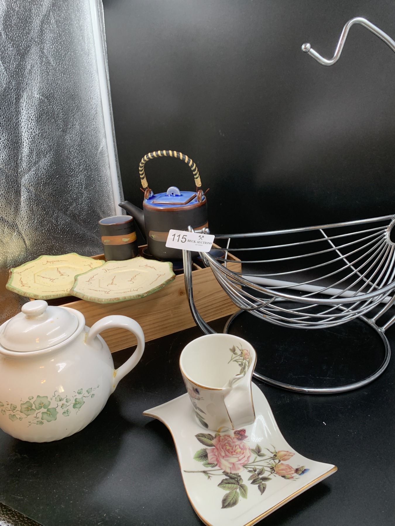 Tea Pot Plus Tea Cups and Quality Banana Stand and More