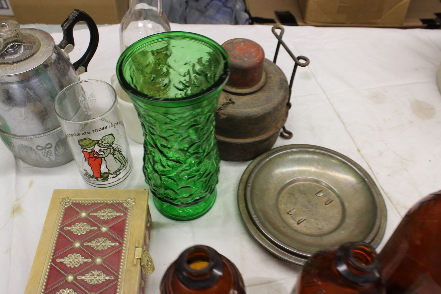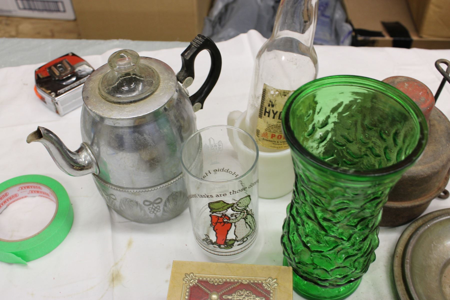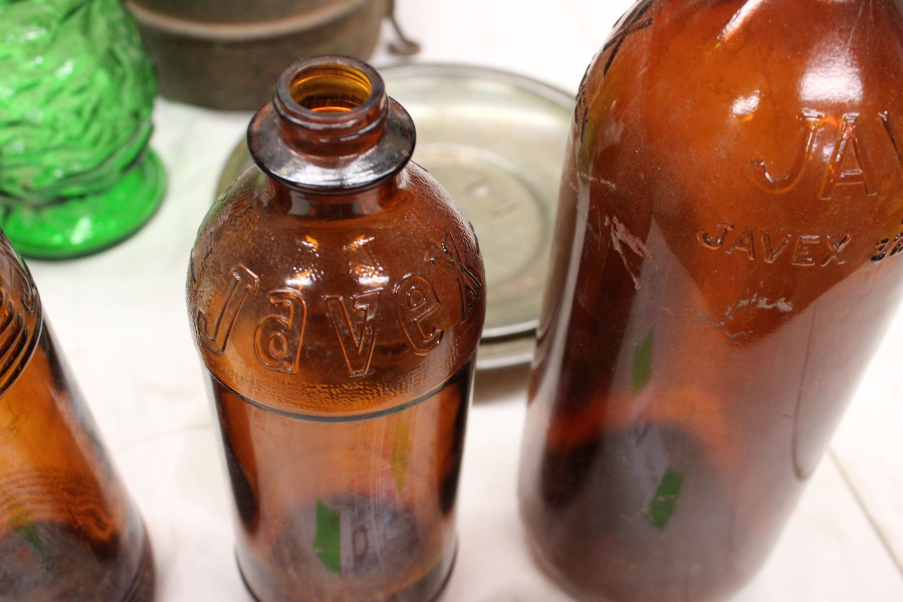 Tea Pots and Glass Vase, Javex Bottles