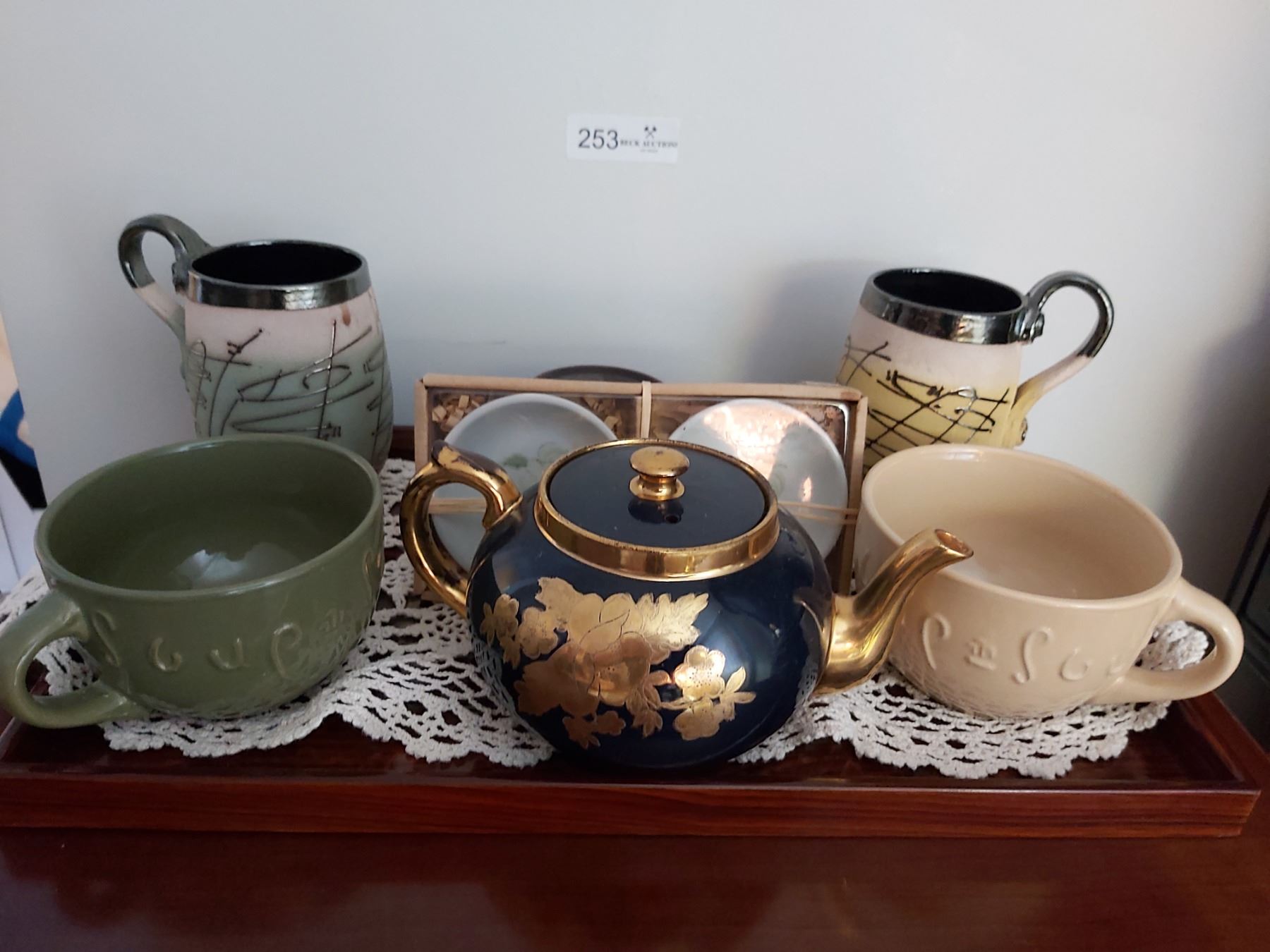 Tea Serving Tray with Unique Mugs, Teapot & More