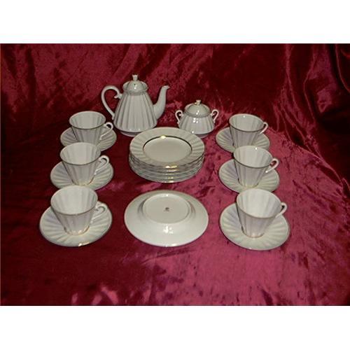 Lomonosov Tea Set Service for 6 Signed Russia. This is a real older style tea set for 6, 20 pieces and all signed. They have a gold trim on all of them, and every piece is signed. We have 6 Sandwich/dessert, 6 Cups and Saucers, 1 Sugar Bowl, and 1 Coffee or tea pot. All signed made in Russia, and a few saucers have some very small scratches from use. The rests are in perfect condition, and it does not take away from set, as they are on the middle of saucer. I am told that they are signed and they are from LOMONOSOV and are some what rare. So they are one very beautiful set and I hope you like them. Great add to any collection you may have, and great for any tea party for guests, as they are that nice. Enjoy