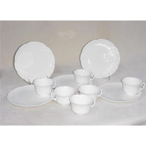 Hammersley & Co. Bone China, made in England. Tea and toast set including 5 ea,. 8" plates and 6 cups. Scalloped design, shown in detail in photos.
