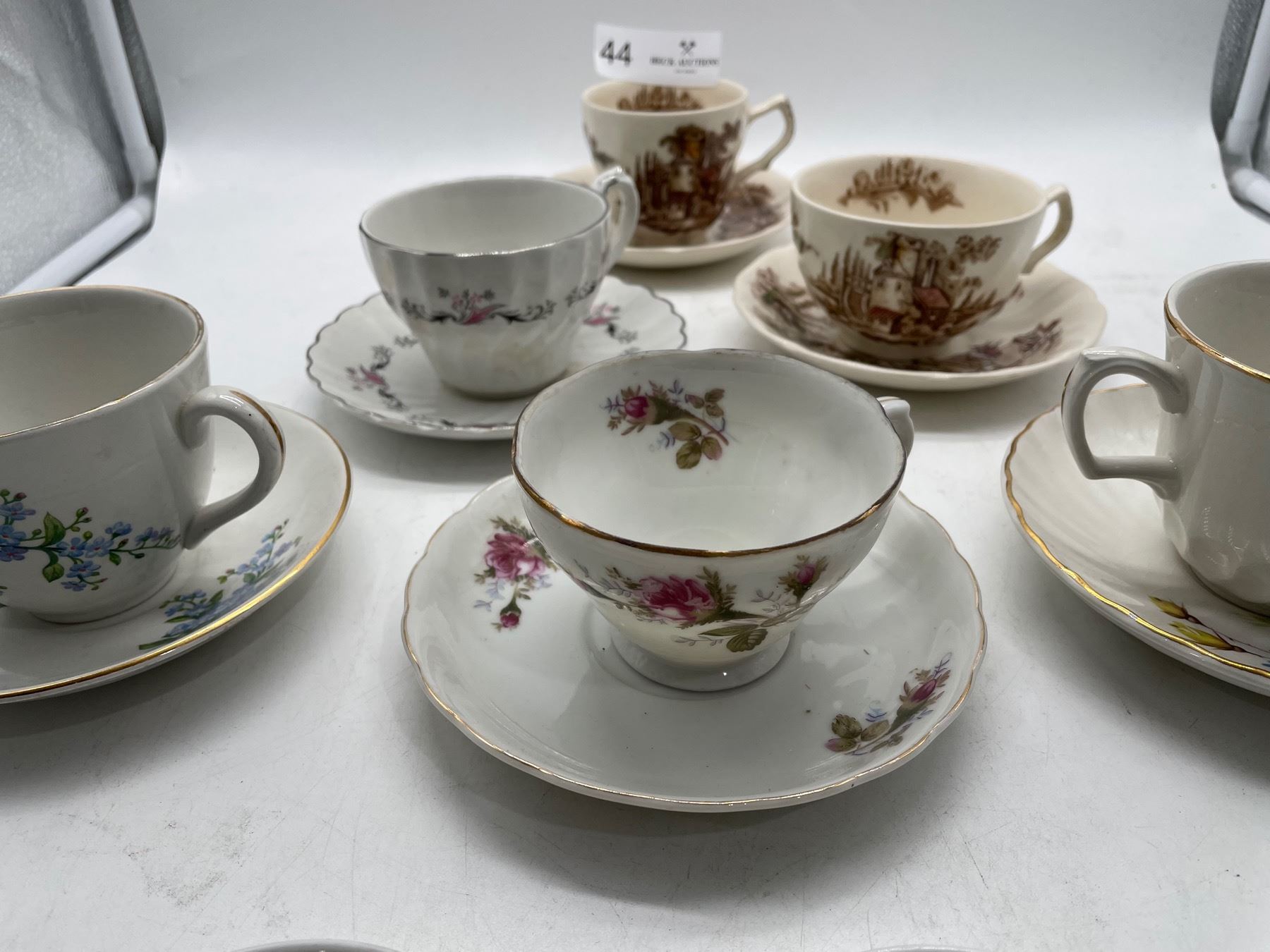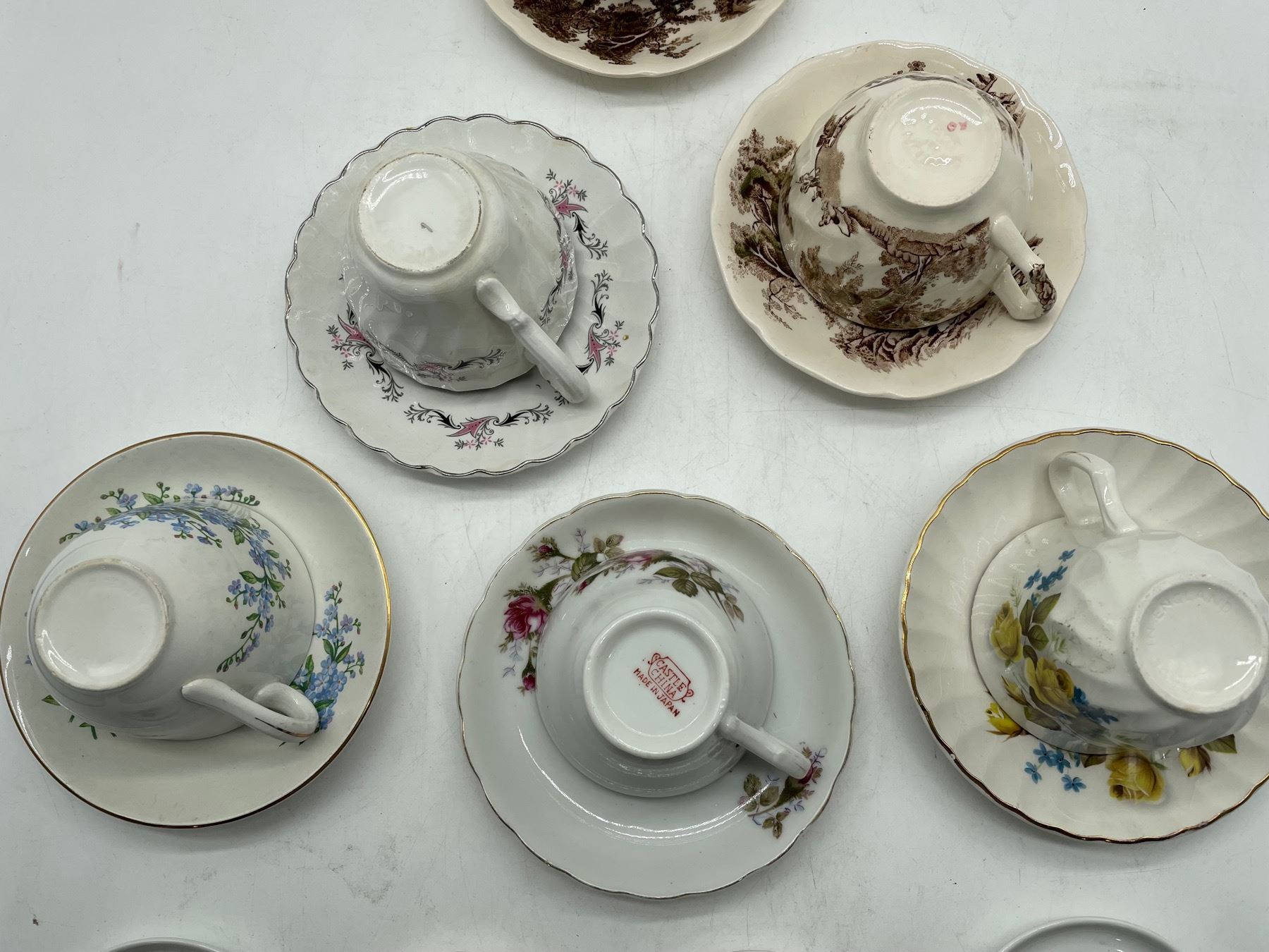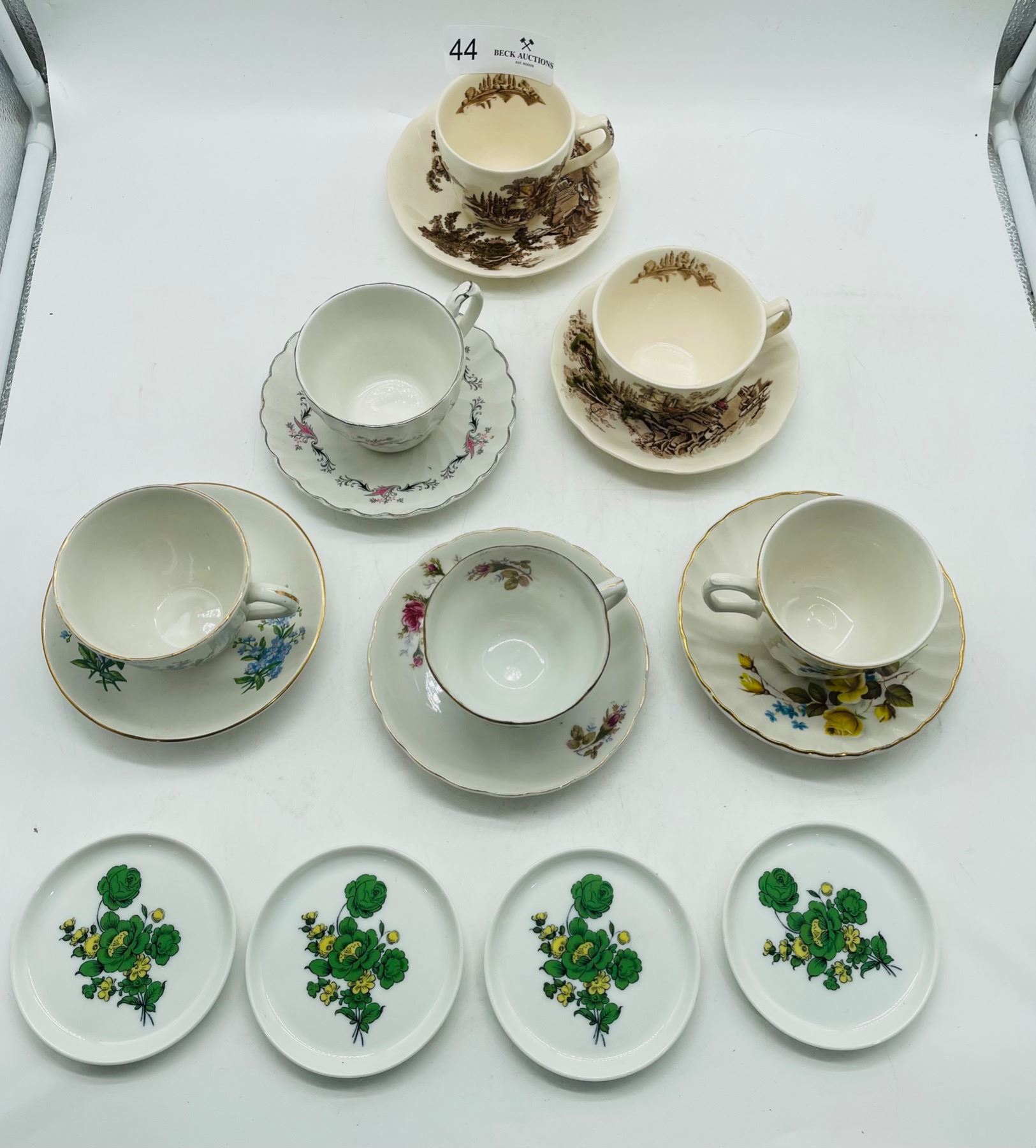 Lot of six teacup and matching saucers. all but one only say "Made in England" on the base. The other is Japan. Includes four spoon rests. No chips or cracks. Crazing on a few of the teacups and saucers.
