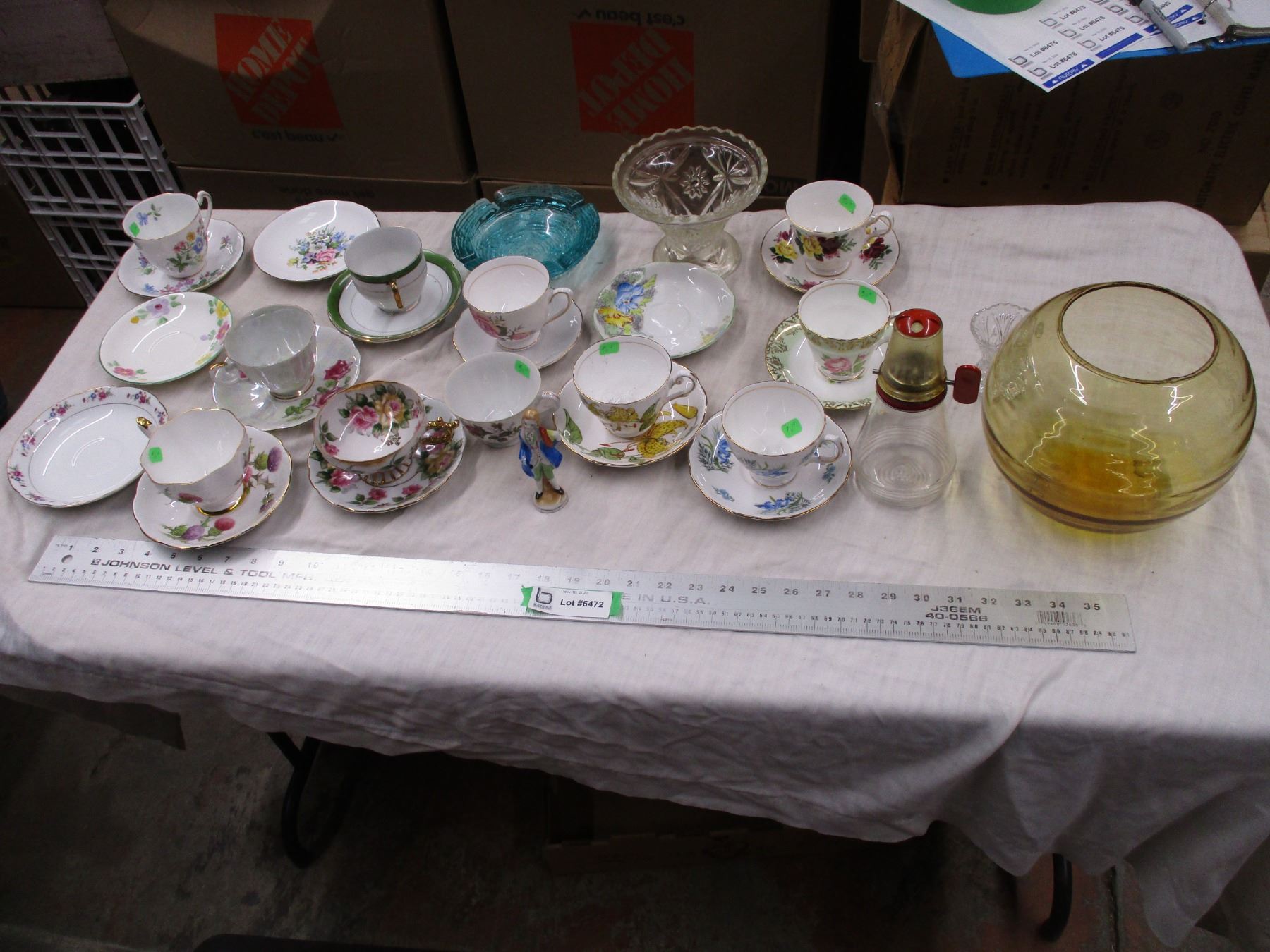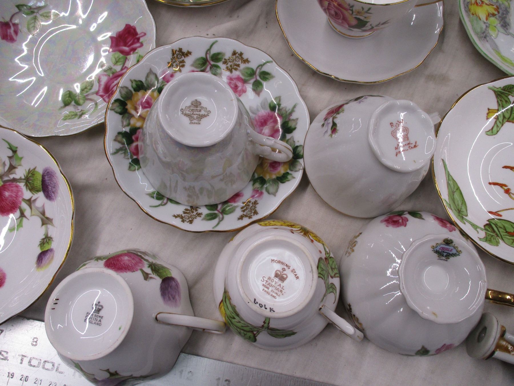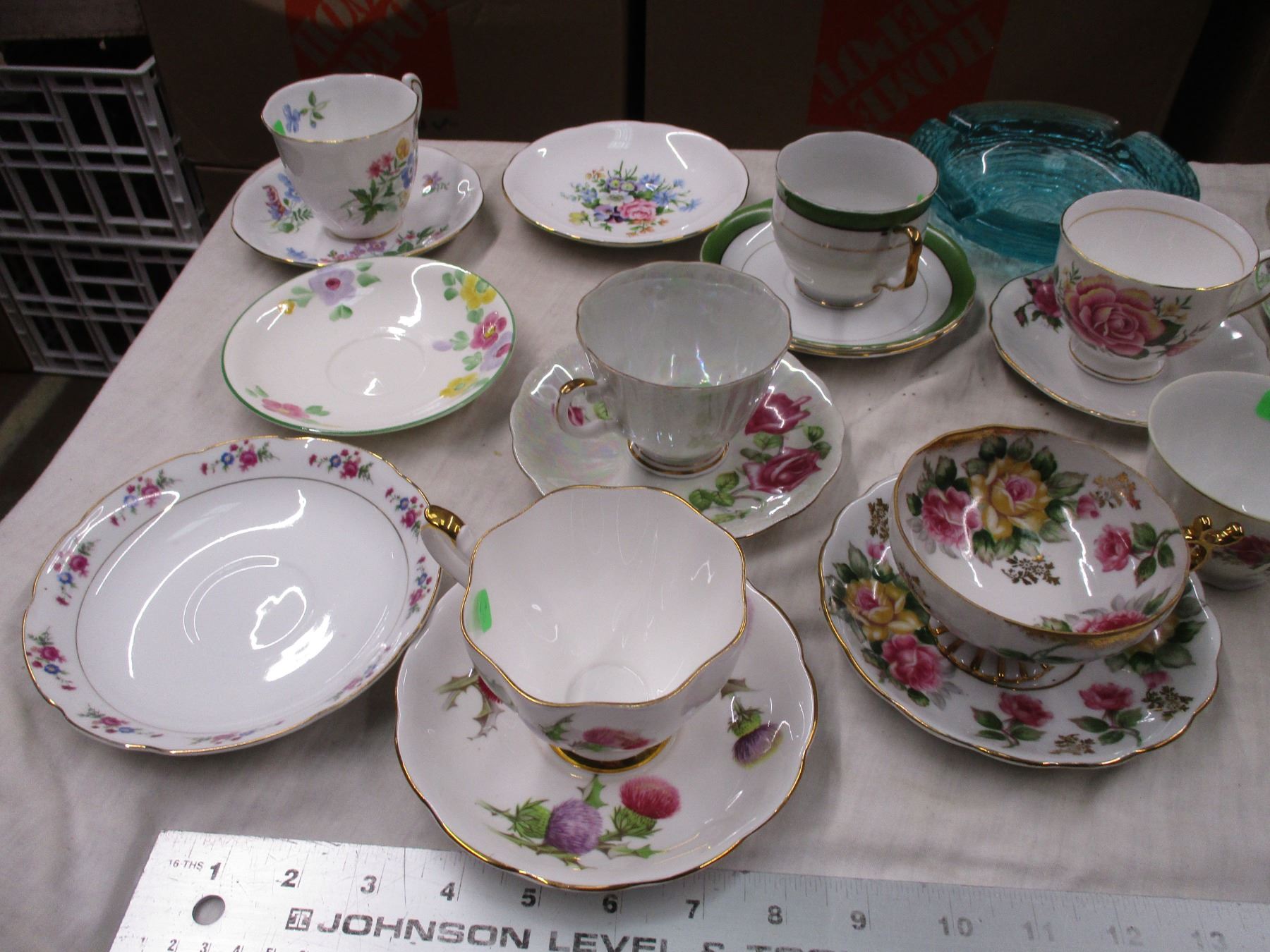 Teacups + saucers + misc