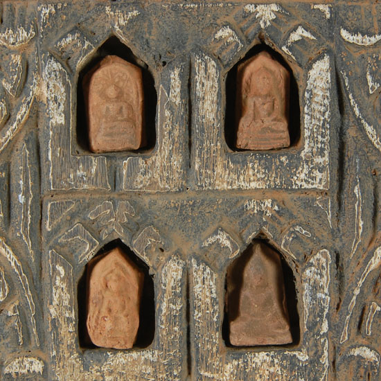 Excellent Hand Carved, In Black, 17", Inset Clay Amulets