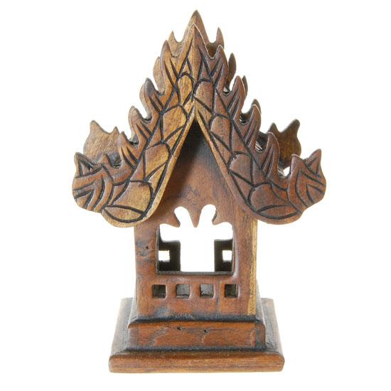 Used in Thai Buddhism to house free roaming spirits in nature (and keep them out of the main residence); Nicely handcarved and detailed piece; 5"