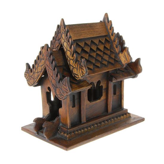 Used in Thai Buddhism to house free roaming spirits in nature (and keep them out of the main residence); Nicely handcarved and detailed piece; 10"