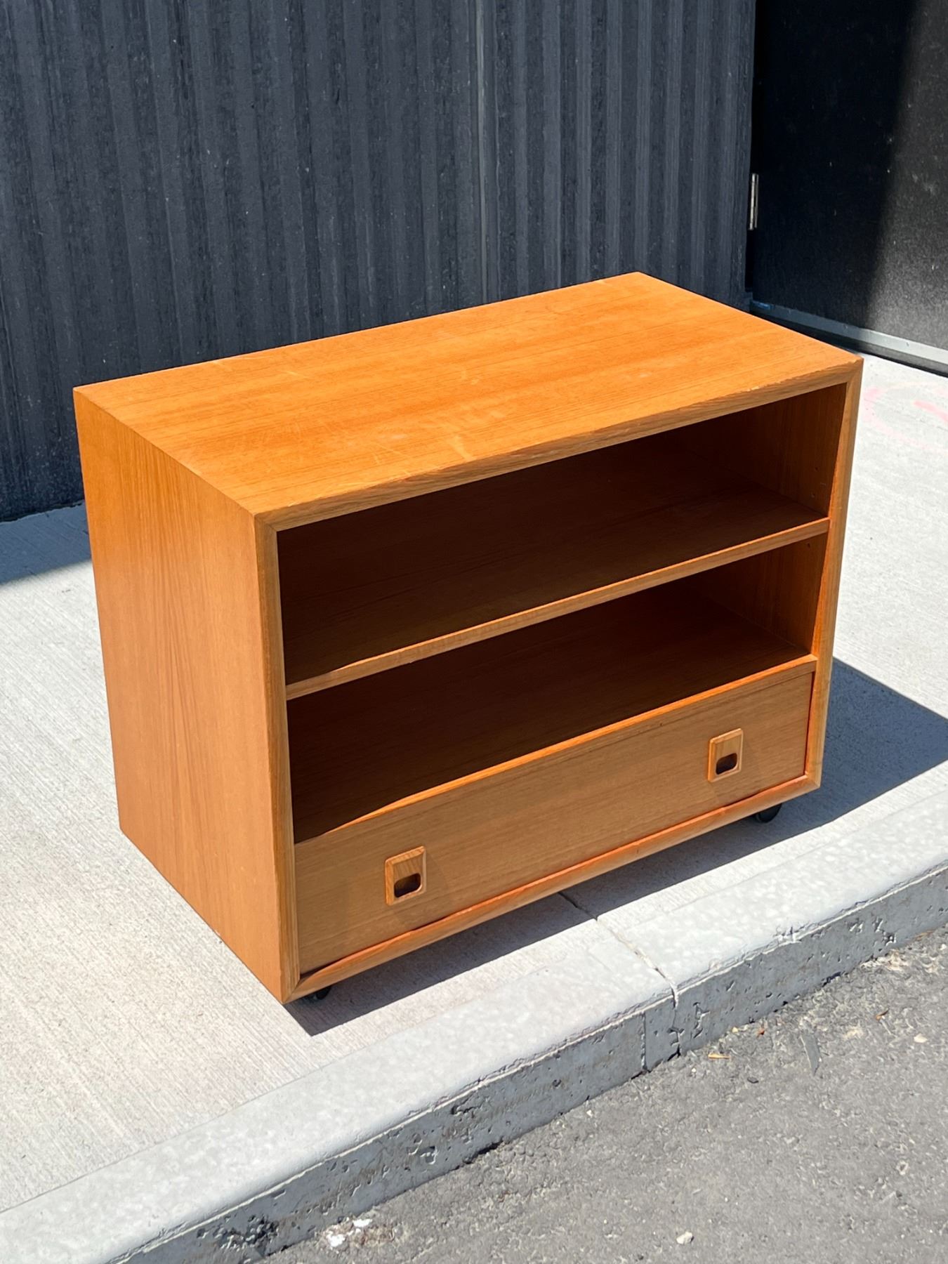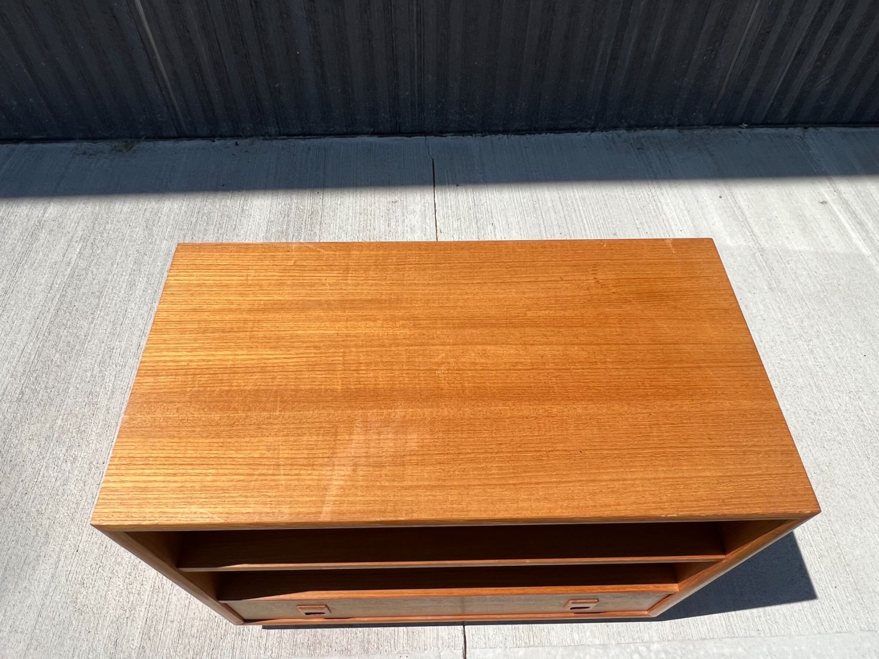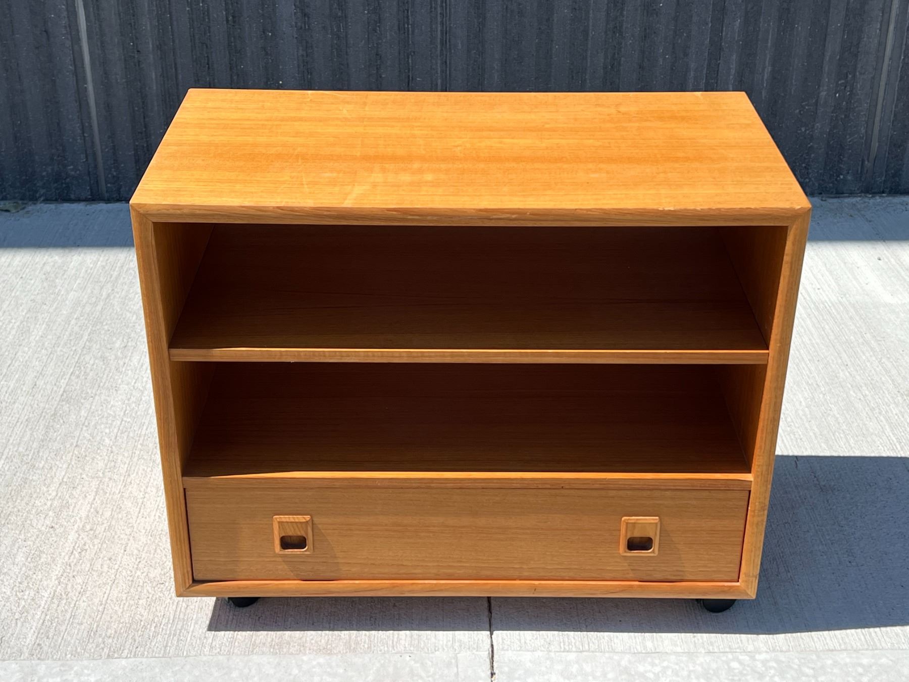 Teak Media Unit / Entertainment Stand with Removeable Shelf. Will accommodate records with shelf out. Approx: 30x16" & 24.5"T