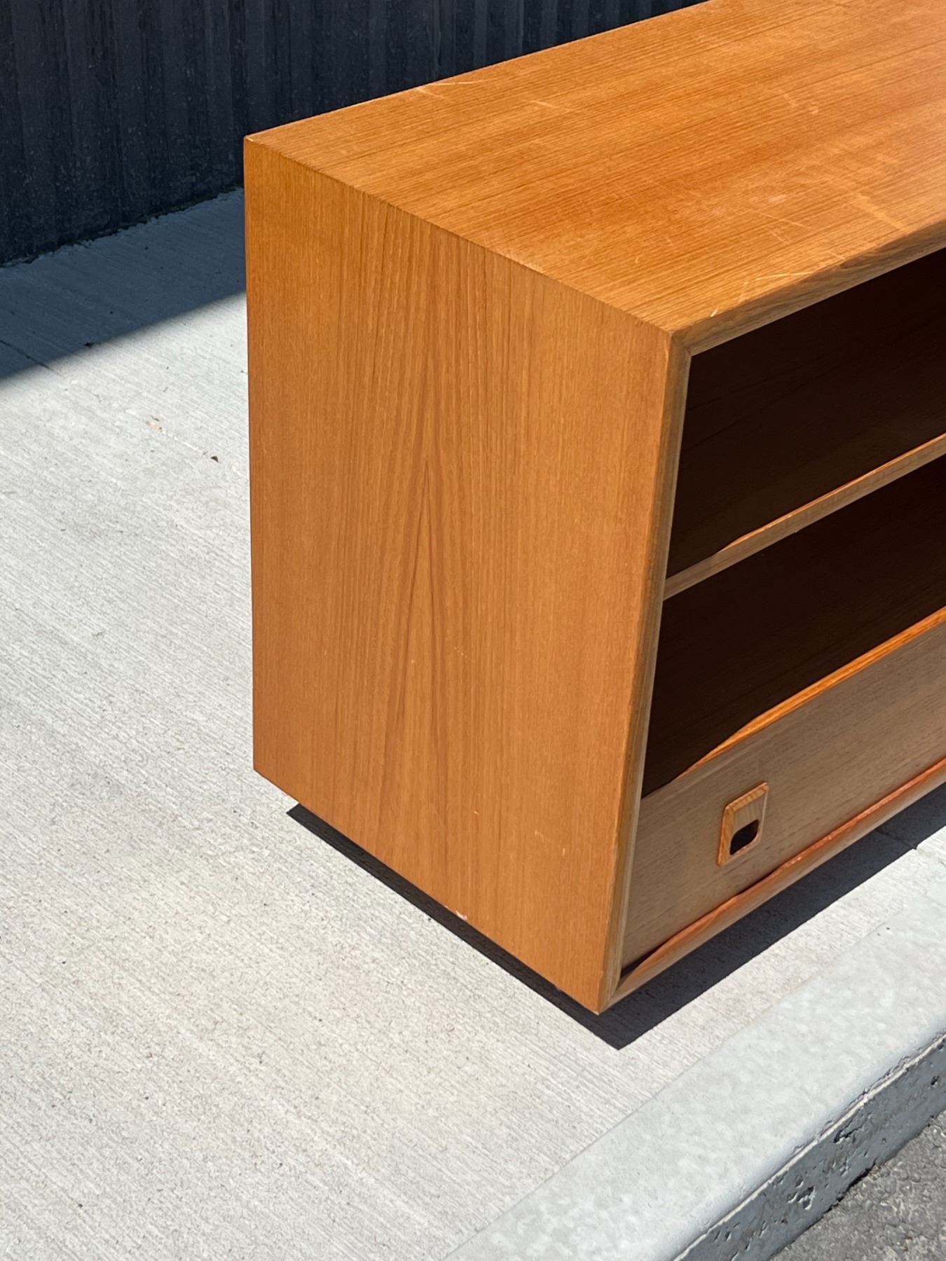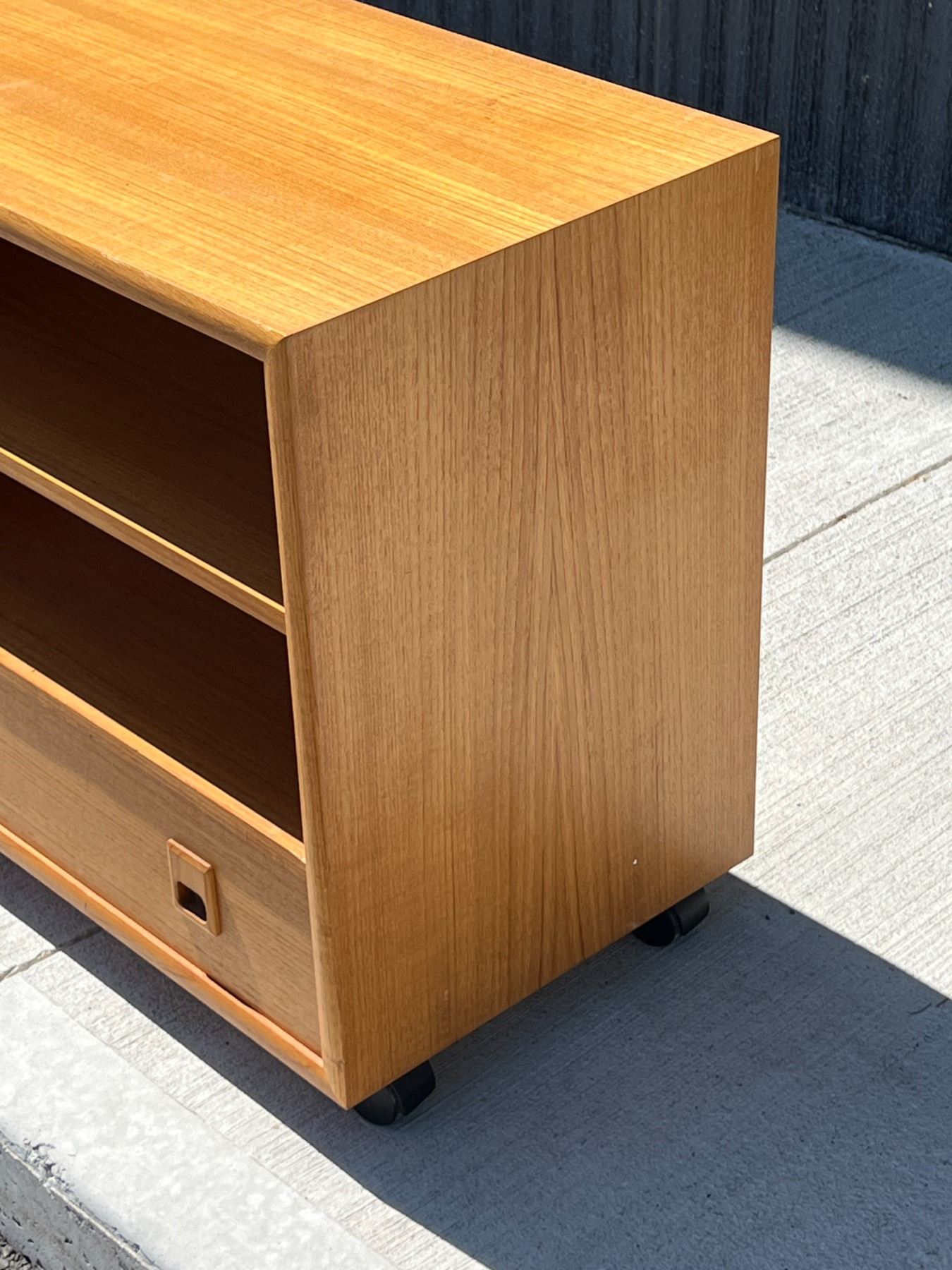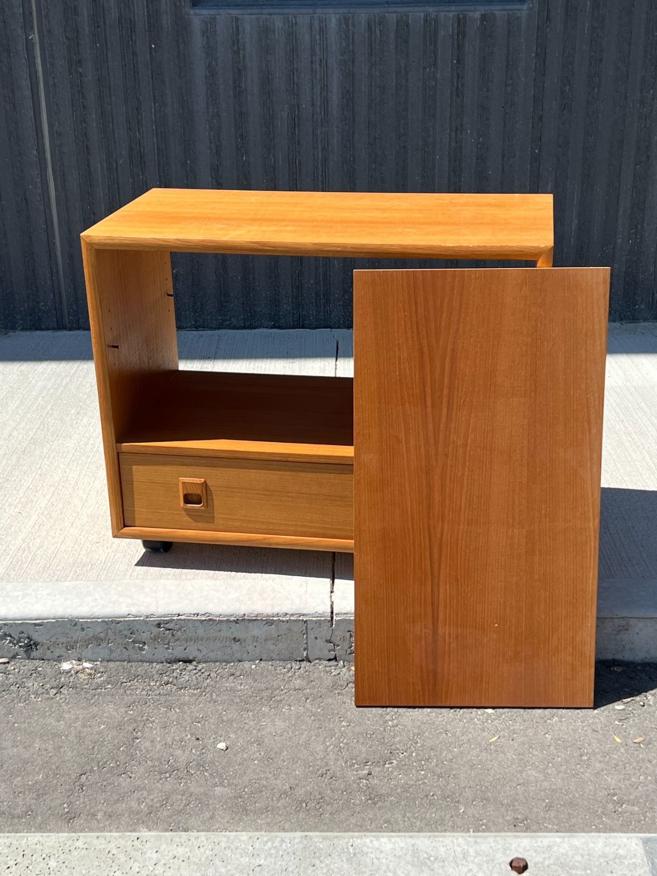 Teak Media Unit / Entertainment Stand with Removeable Shelf. Will accommodate records with shelf out. Approx: 30x16" & 24.5"T