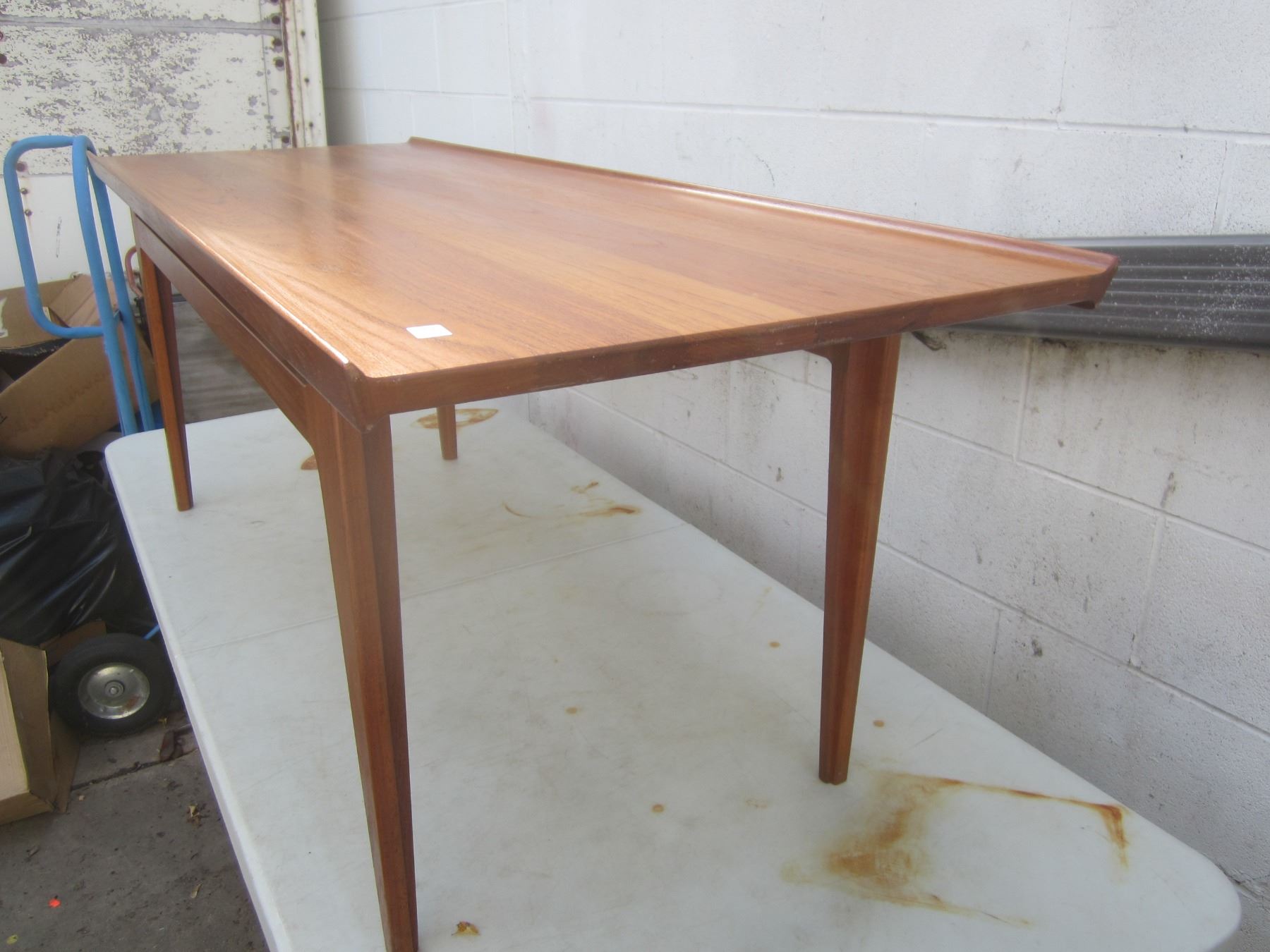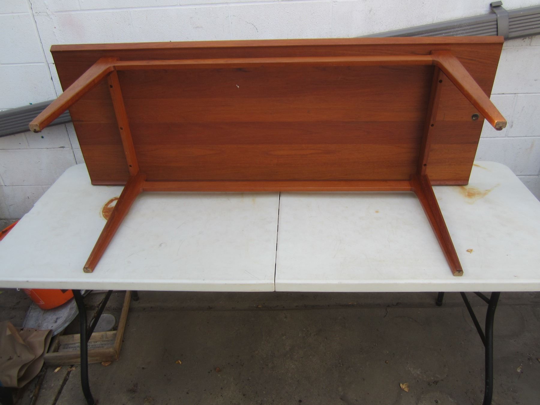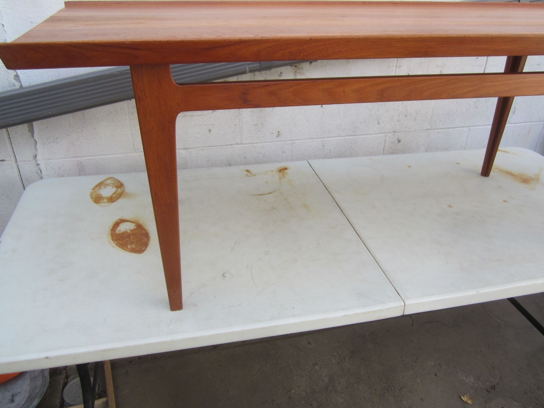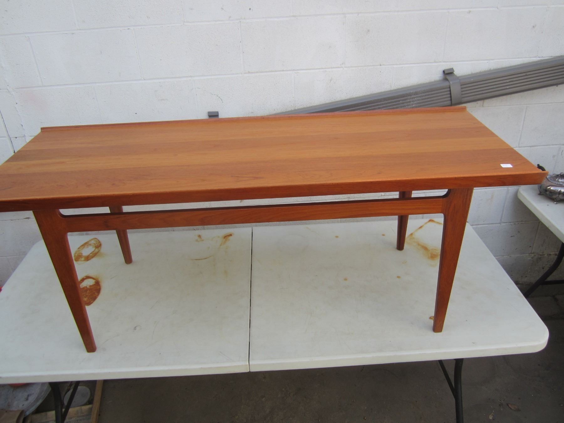 Teak Mid Century Modern made in Denmark Large Coffee Table Marked 57 inches long 21 inches wide 21 inches tall