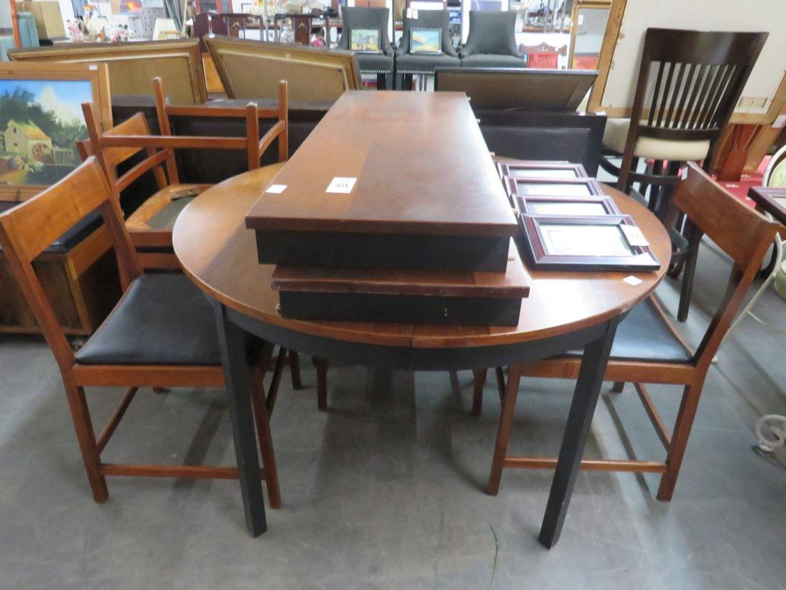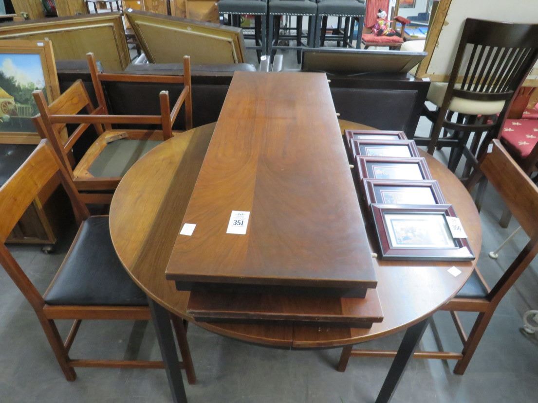 Teak ? Round Dining Table w/6 Chairs - 2 Leafs
