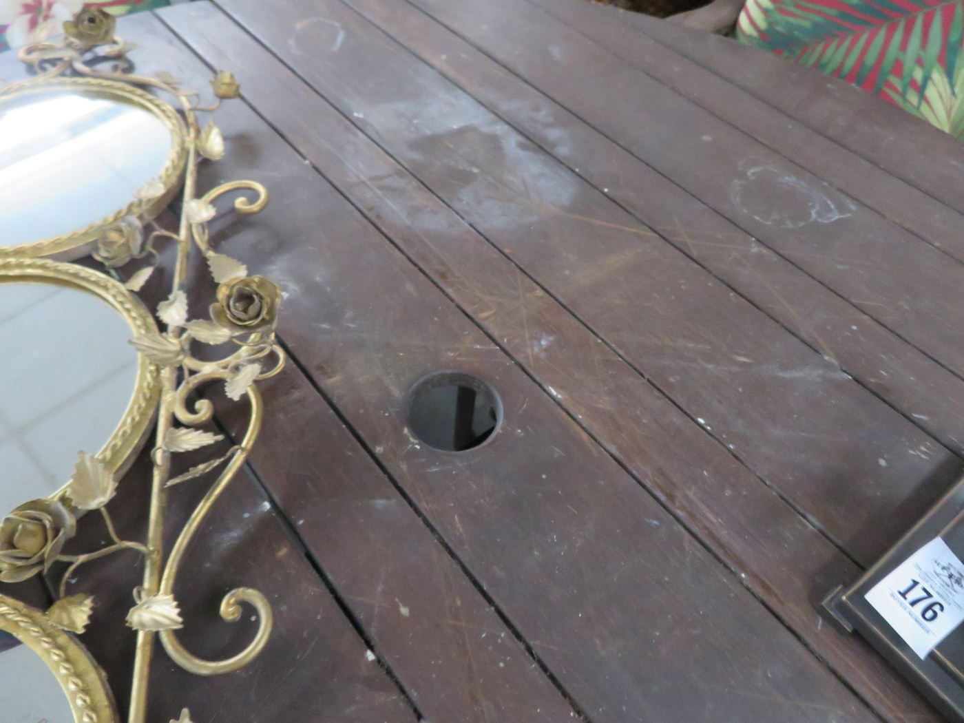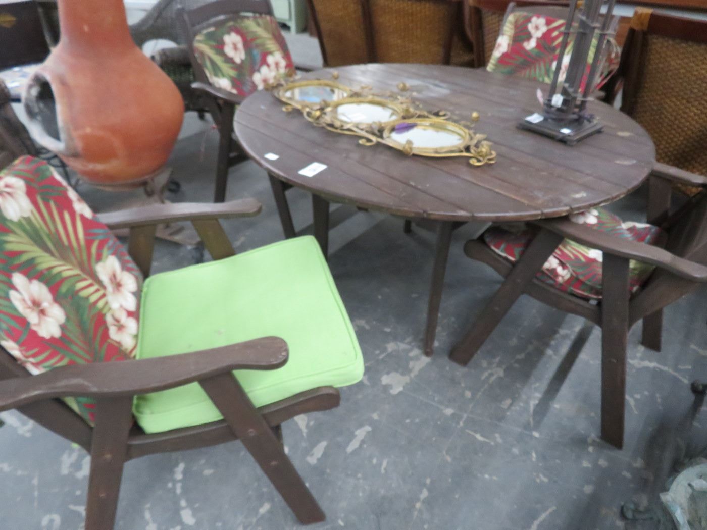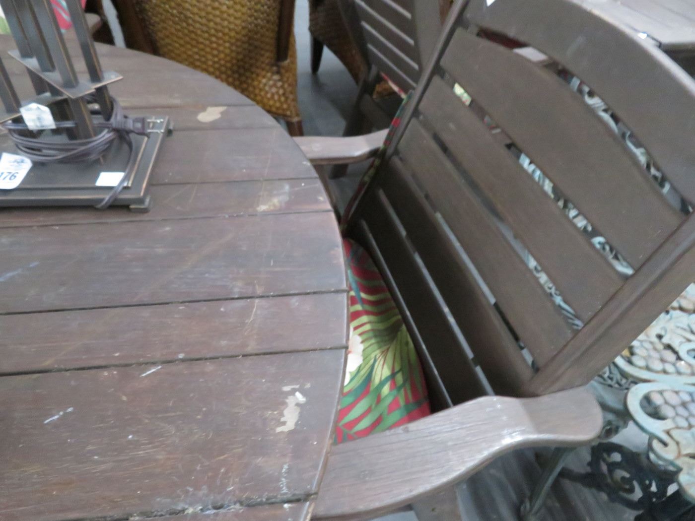 Teak ? Round Patio Dining Table w/4 Armchairs