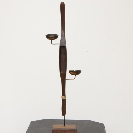 Candle Holder On Base Made From Antique Silk Loom Tool 22"