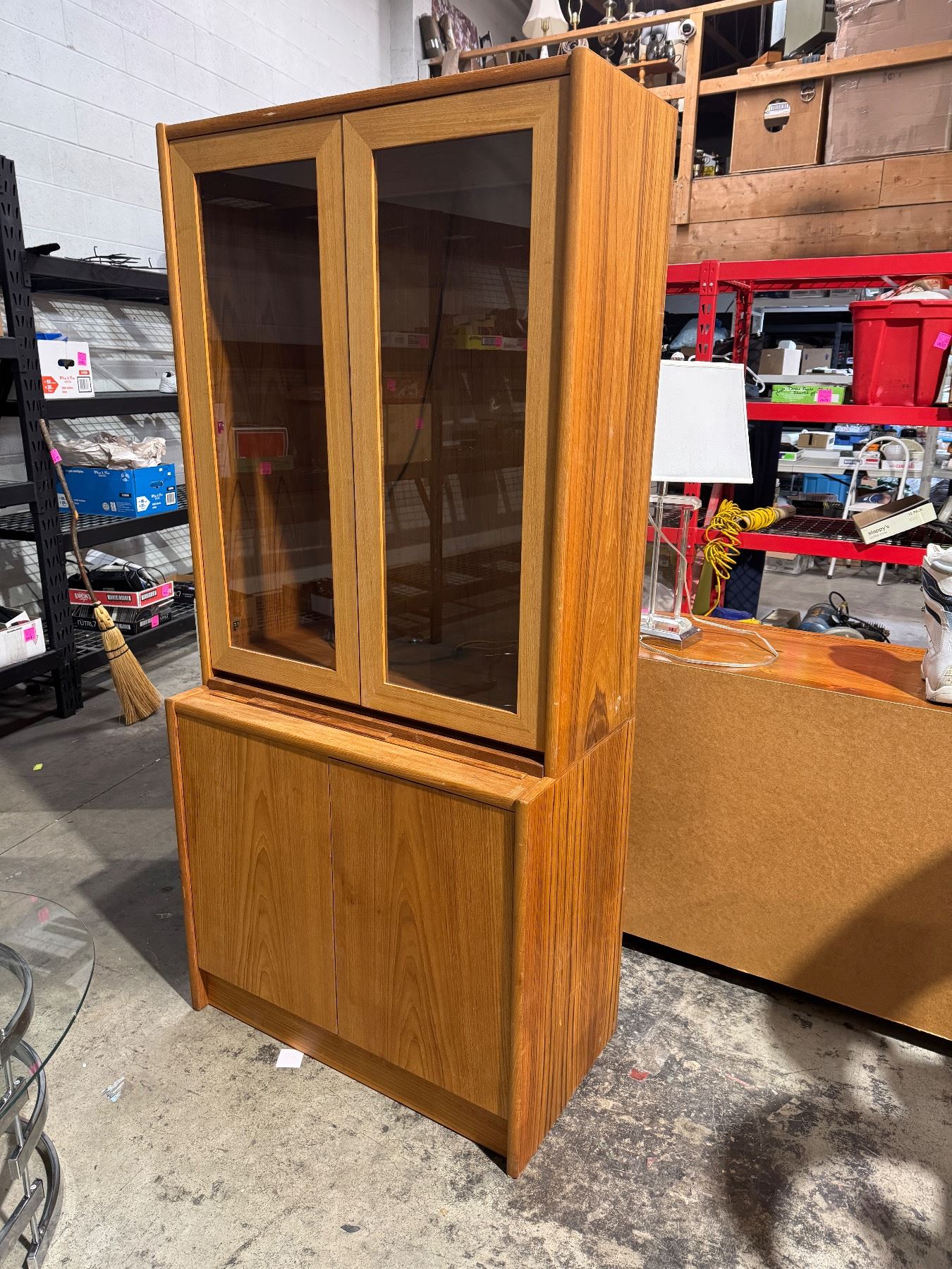 Teak cabinet measures 33 1/2" x 18" x 71 1/2" tall piece