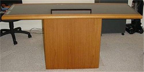 with drawer which can be removed. ONLY the console is for sale in this imge. Must be picked up after the auction