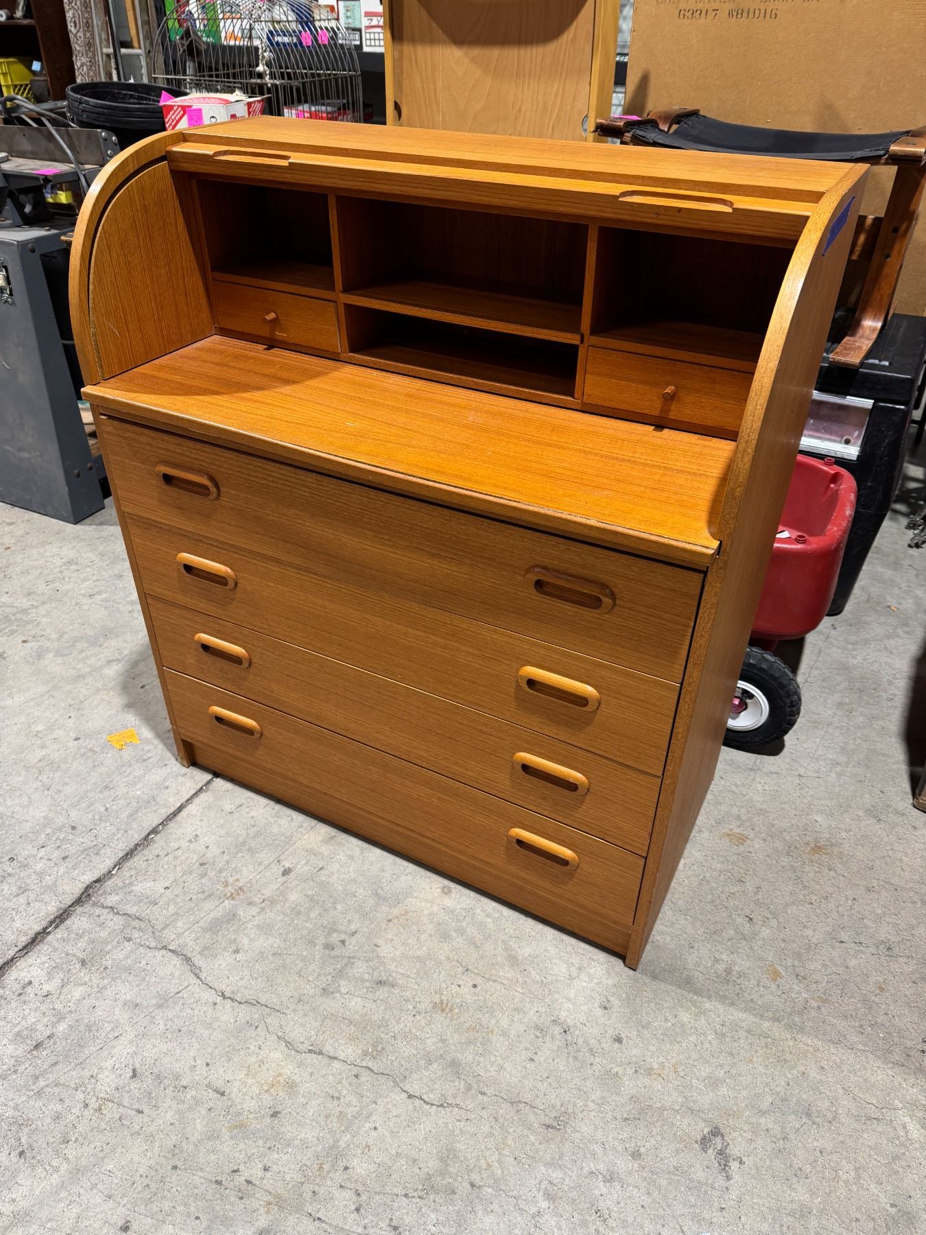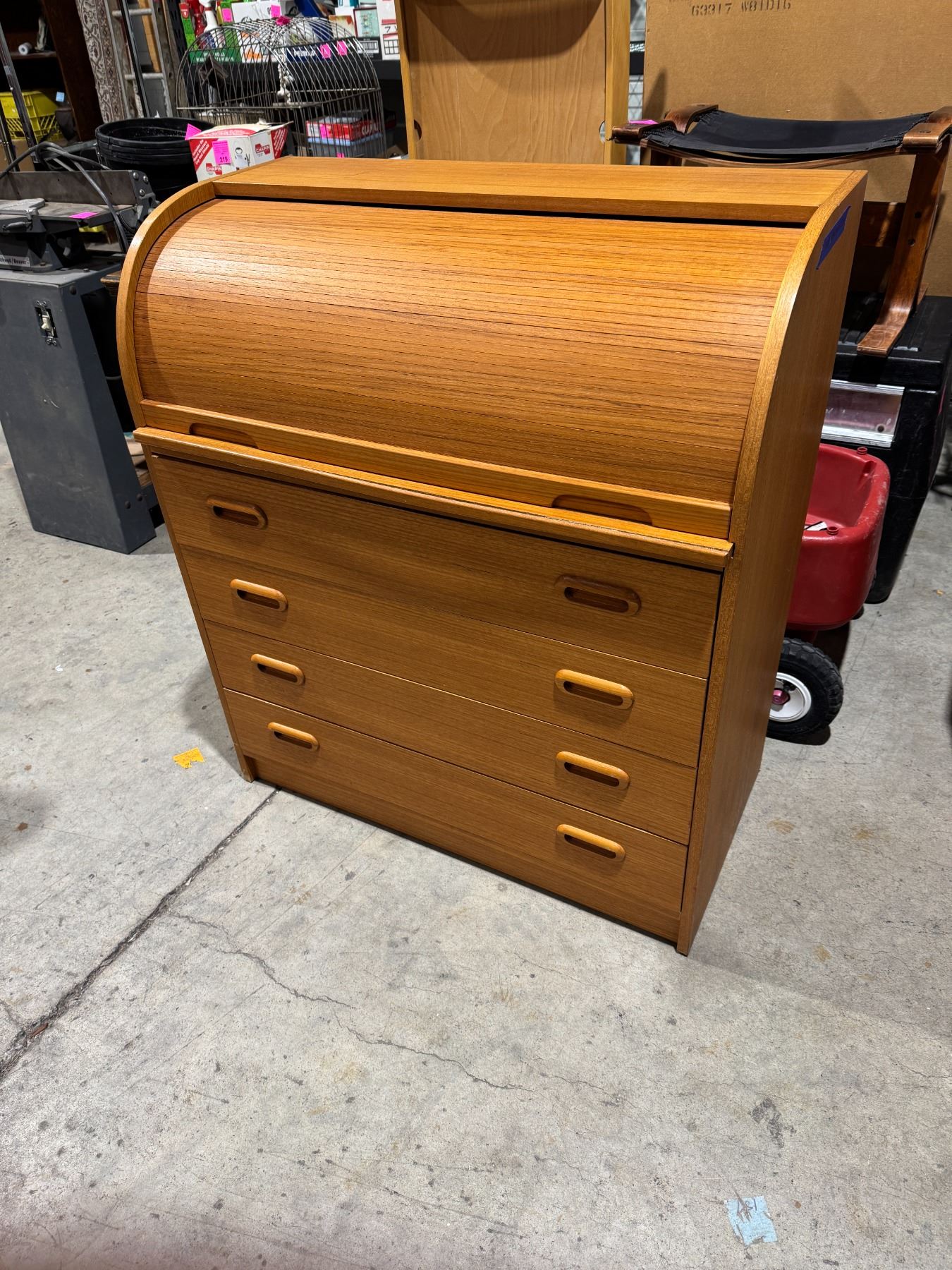 Teak roll top cabinet