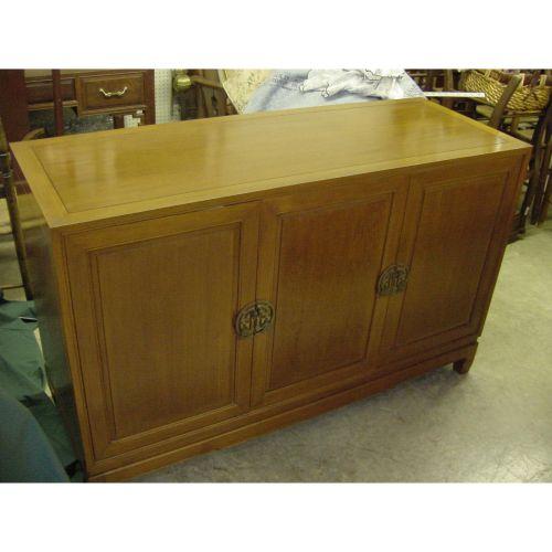 Commissioned in either Thailand or Japan in the 1960s, this sideboard has 3 doors in the front, Chippendale in form, 54" long by 20" deep by 34" tall, solid, heavy Teakwood, excellent condition, ready to be used in anyone's residence.