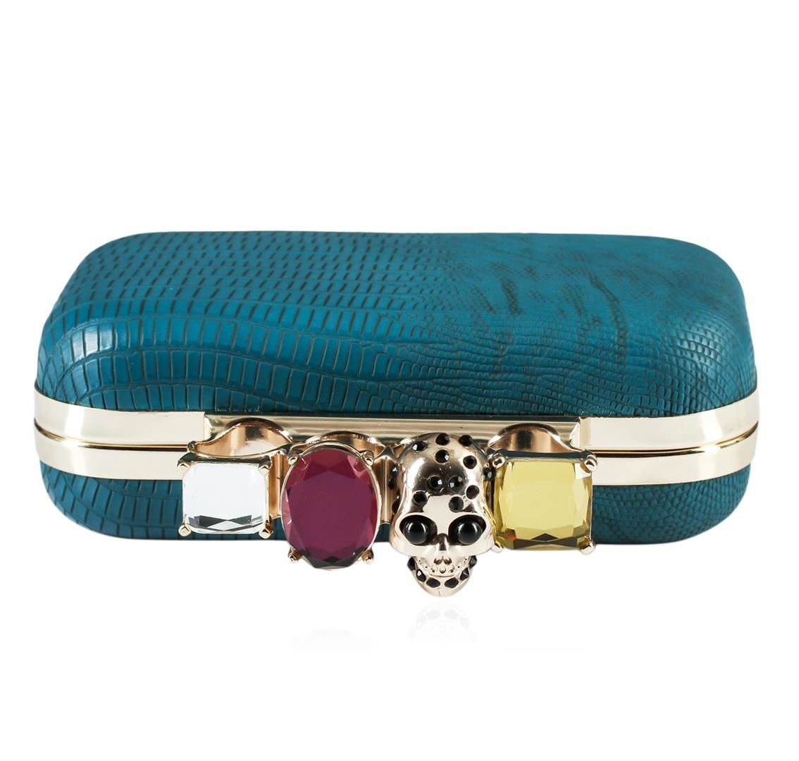 A Beautiful Teal Blue Textured Evening Clutch with accent Stones.