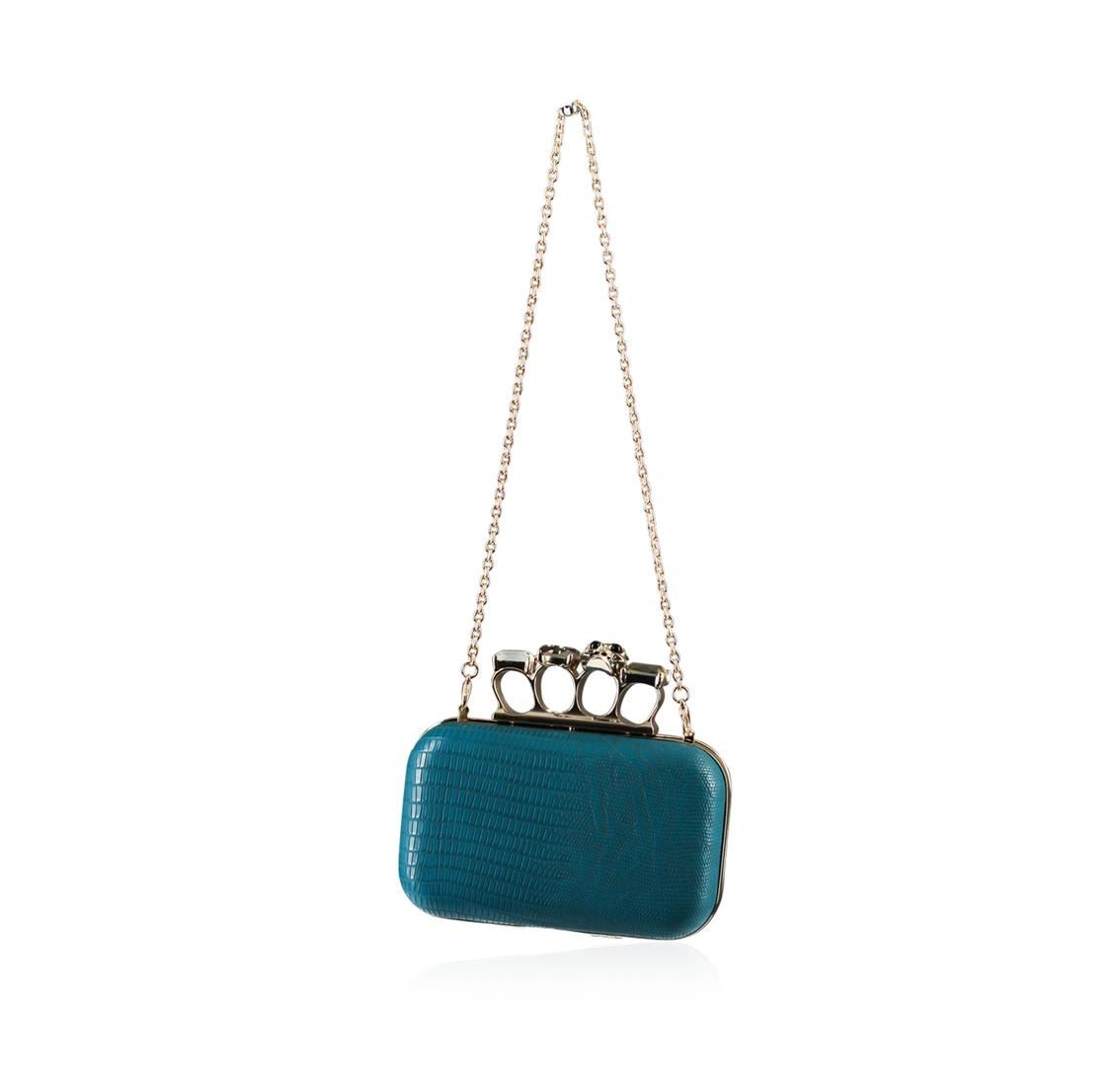 A Beautiful Teal Blue Textured Evening Clutch with accent Stones.