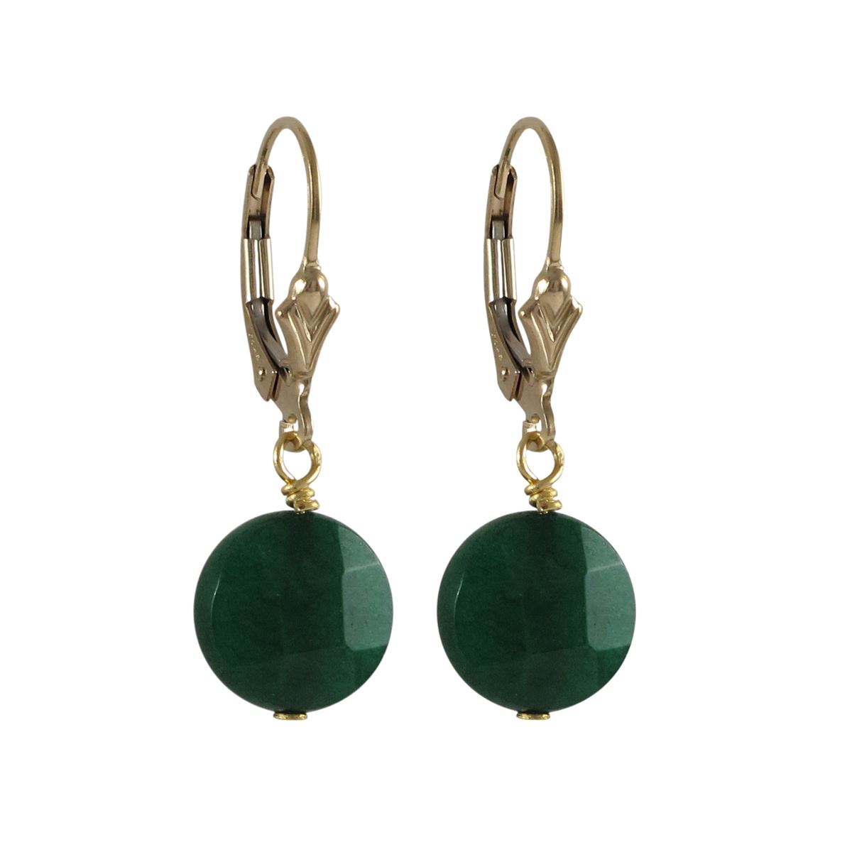 Teal Semi Precious 10Mm Round Flat Stone On Gold Filled Lever Back Earrings, 1.18"