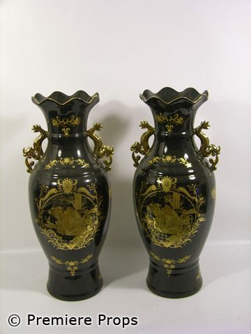 Pair of black and gold ceramic vases (approx. 10"x24"6") (Kim Jong-il's Foyer Set)