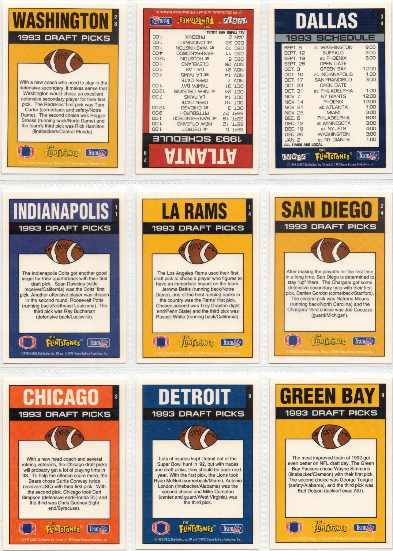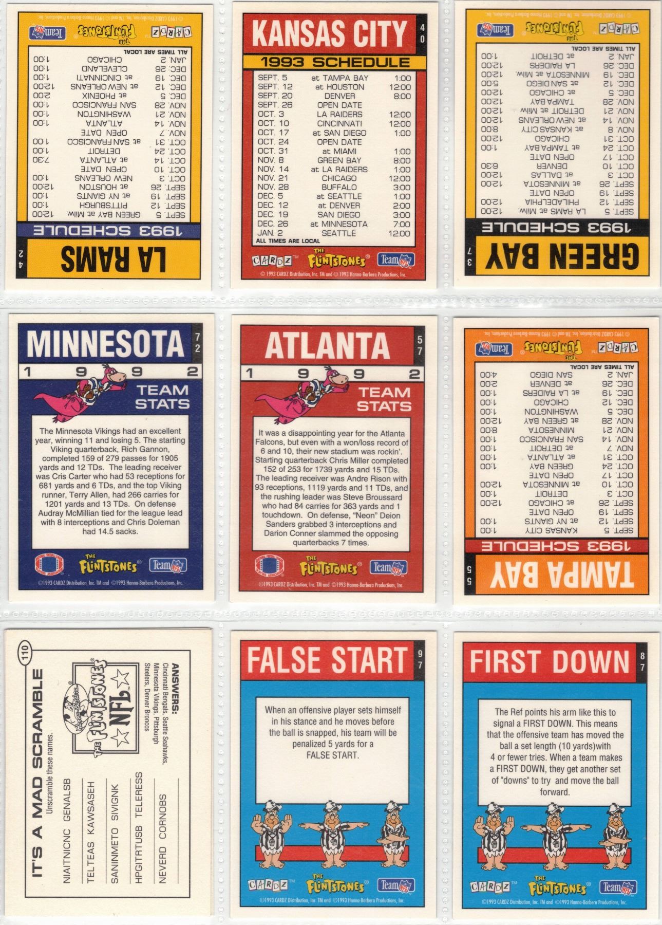 Team NFL Flintstones 1993 CARDZ Trading Cards - 20 Unique Cards