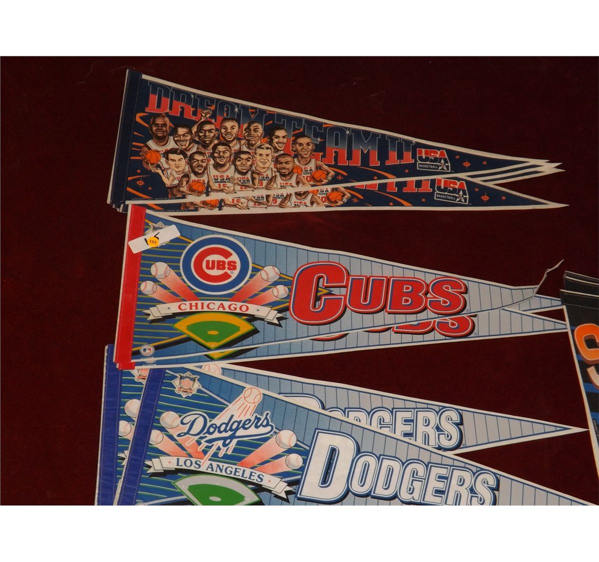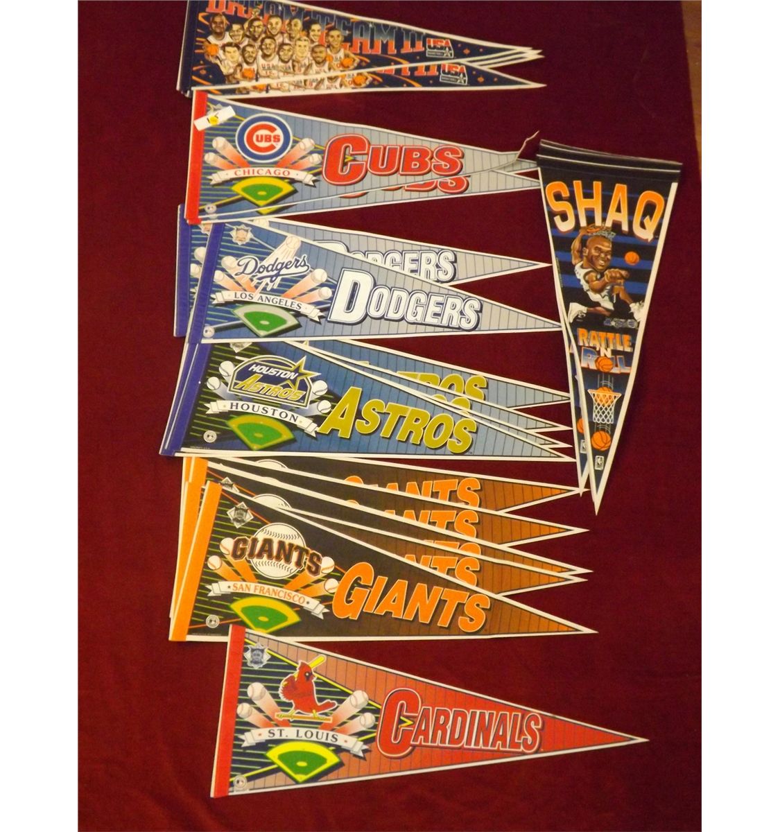 Team & Player Pennants. Misc. Various Team and Player Pennants. Appraised or estimated retail value $400. No COA. All Sales Final. Please see terms and conditions of auction.
