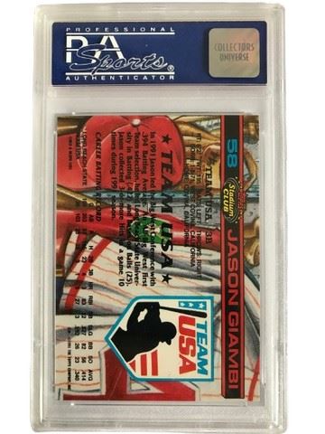 1992 Topps Stadium Club Sky Dome #58 Team USA Jason Giambi rookie card.