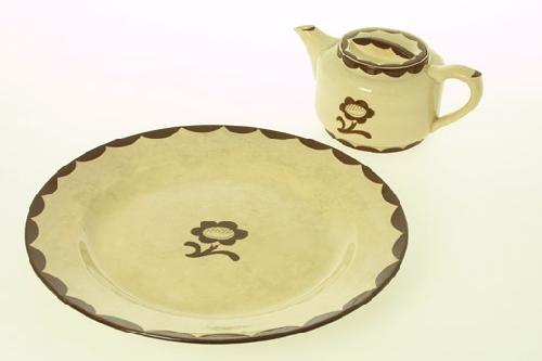 Teapot, Pyro, Wilhelm Kåge, Gustavsberg, nr. 105, production crack and plate nr. 4, diam. 31, minor damage..