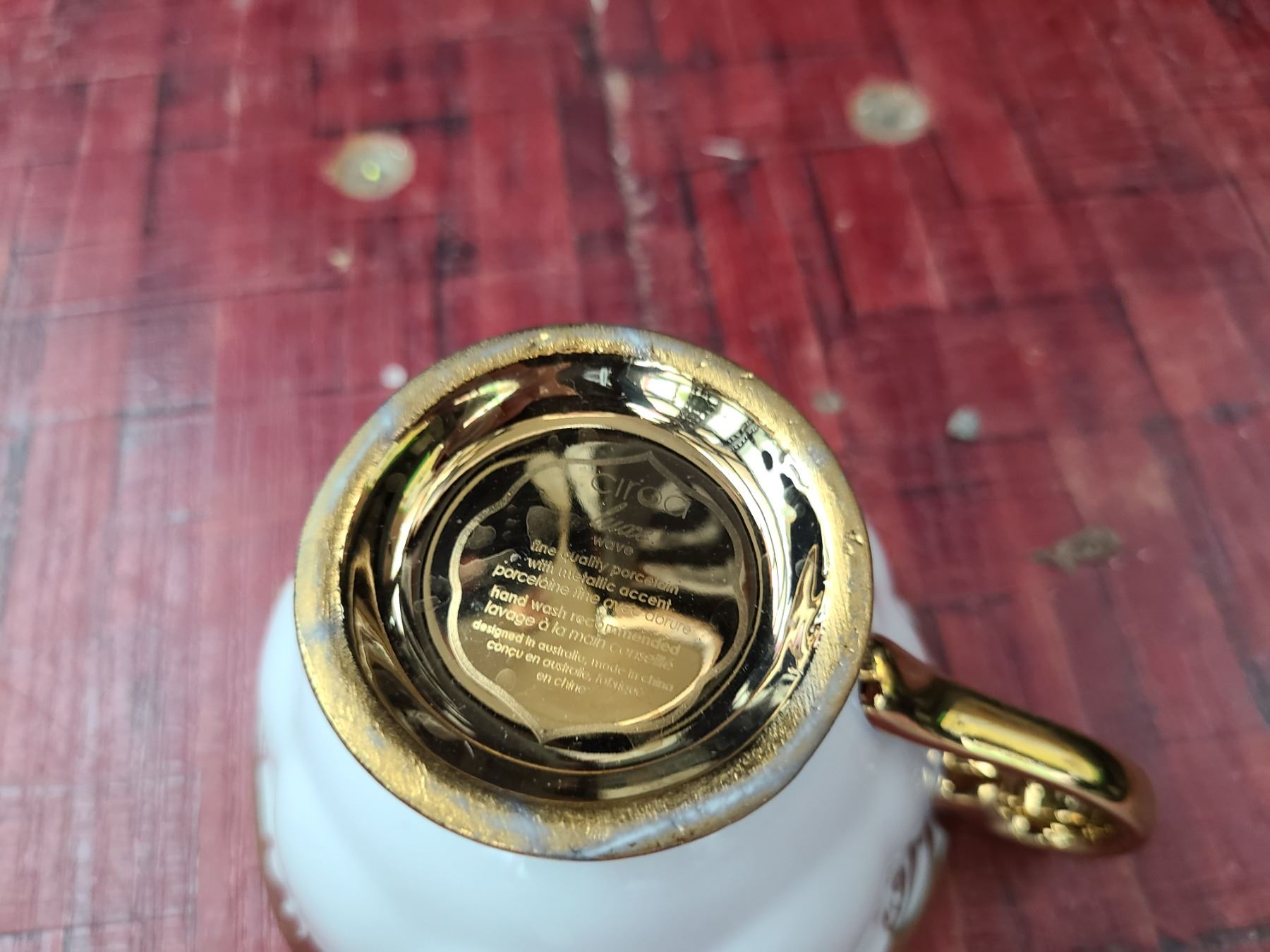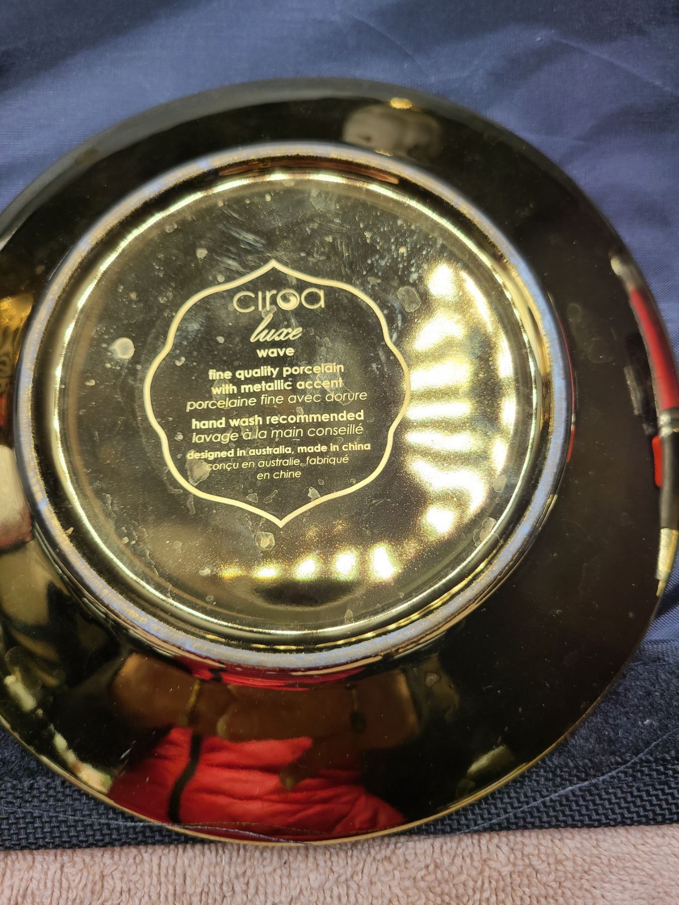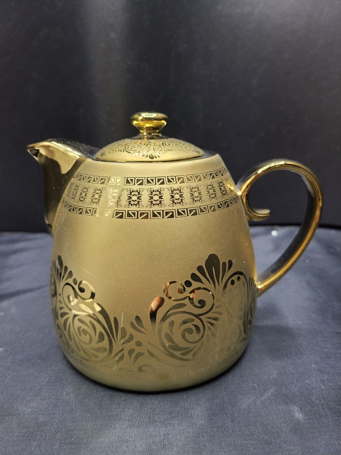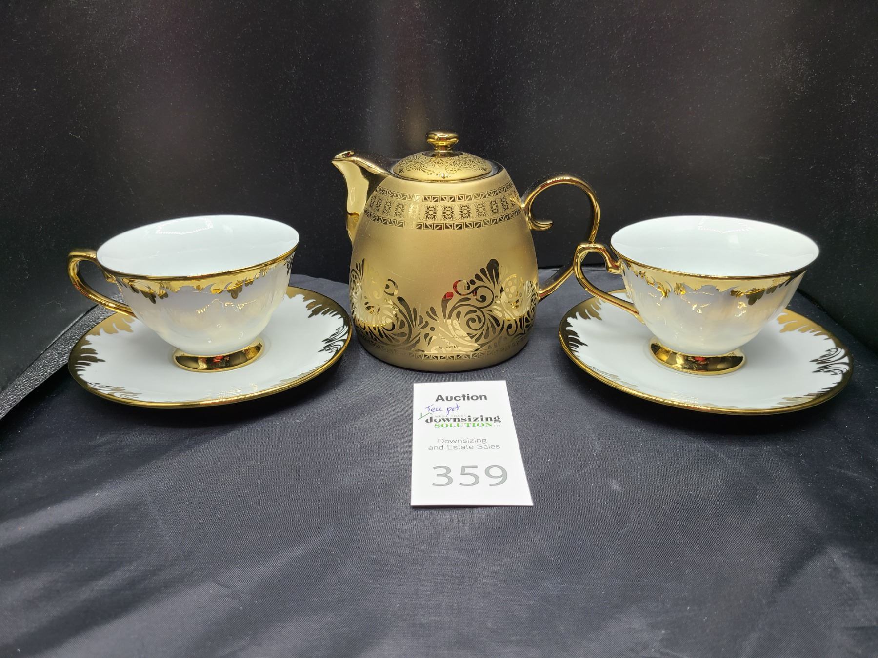 2 cup and saucers and Gold teapot. Bring packing material and pickup at 10 am