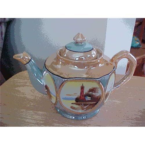 Teapot, signed --Made in Japan on bottom, 4 hand painted scenes all around pot; 6.25" tall, good condition, no chips, dings, etc. paint good