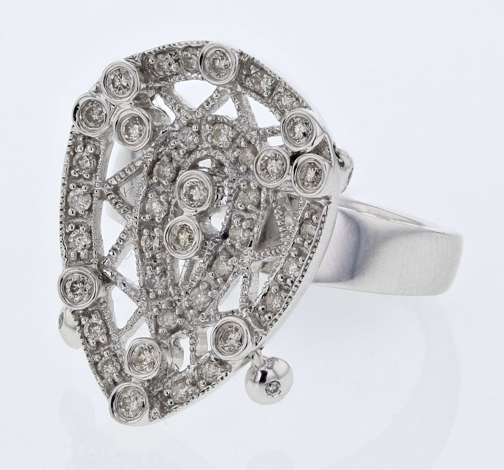 Teardrop-shape Antique Milgrained Diamond Ring in 14K White Gold
