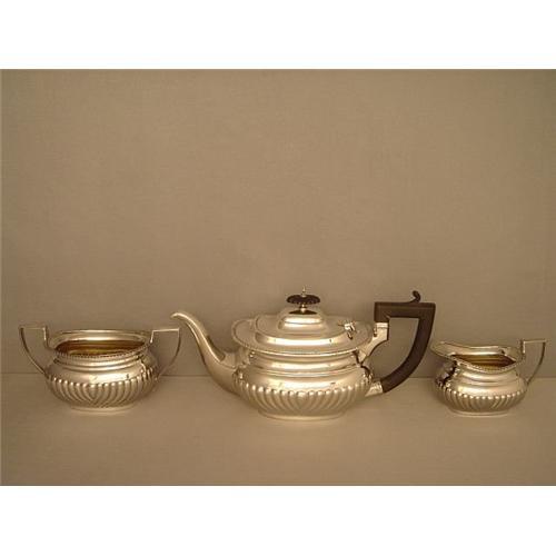 This is a fabulous antique sterling silver teaset. It is English, Birmingham 1921. It was made by the silver manufacturer W. Aitken founded in Birmingham in 1904.The quality and condition are excellant, although it is 86 years old!The milk and sugar are guilded inside also a sign of quality.The teaset is a good size it holds 8 normal teacups.