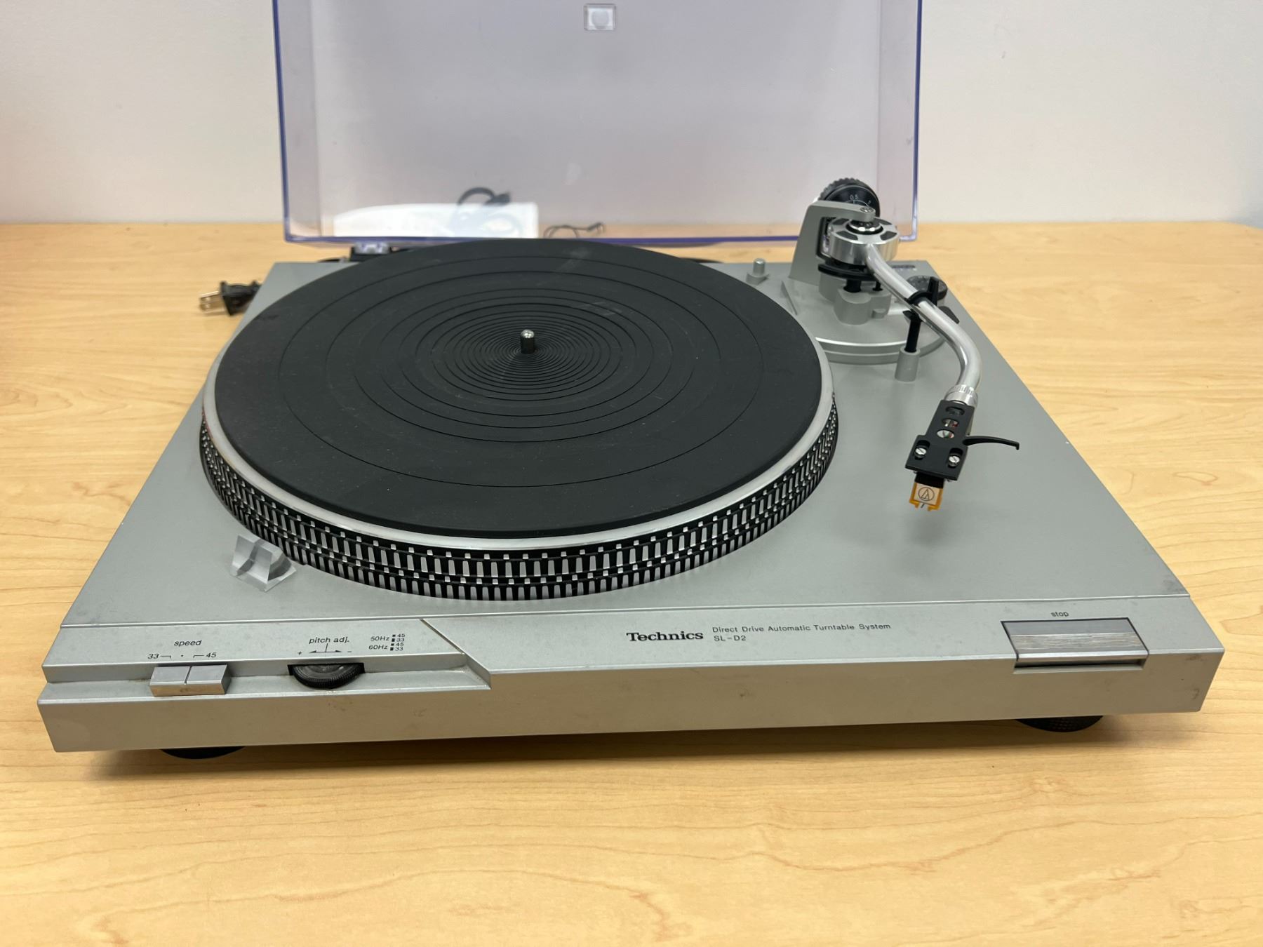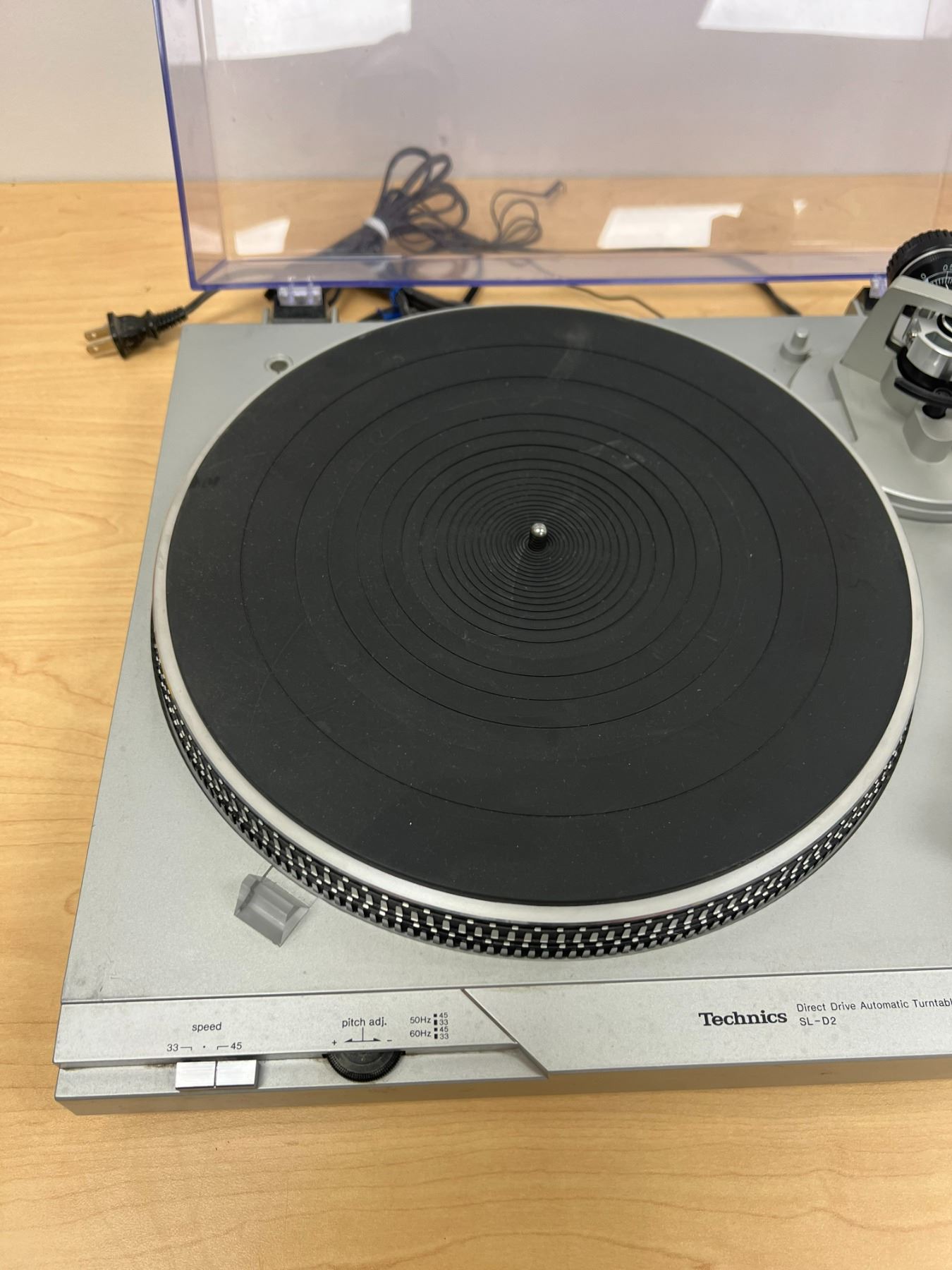 Technics SL-D2 Direct Drive Automatic Turntable Record Player. Not tested. Dust cover sits on top as there is some damage to the plastic connection. Please see photos.