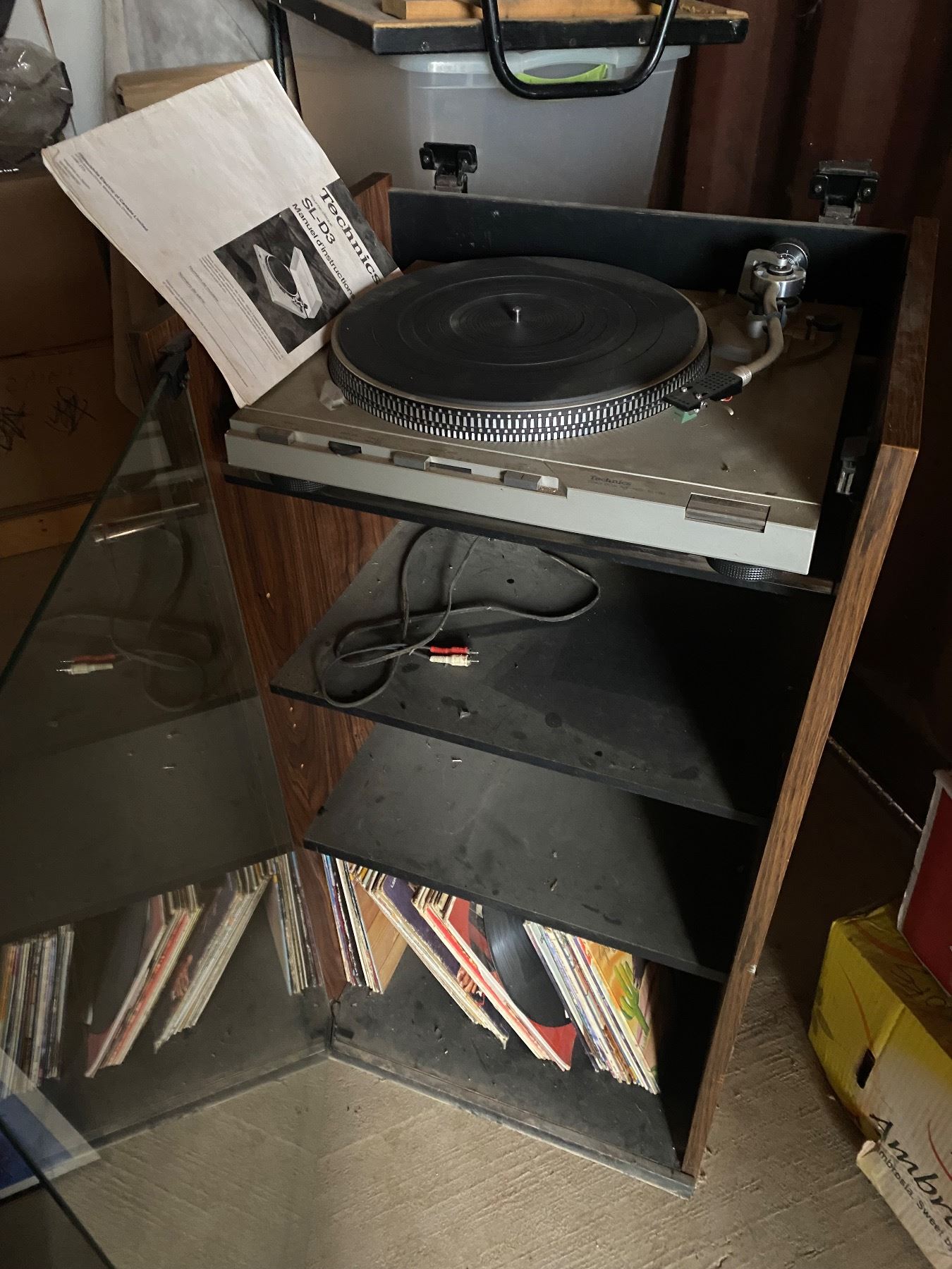 Techninics record player, stand and records