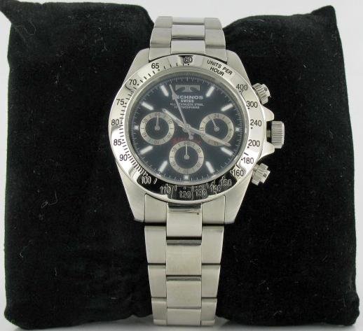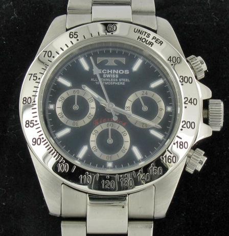 Brand New men's stylish sport CHRONOGRAPH style watch in excellent new condition with 24-hour, multi-seconds dials; stainless case and band; box and papers; retail $1995