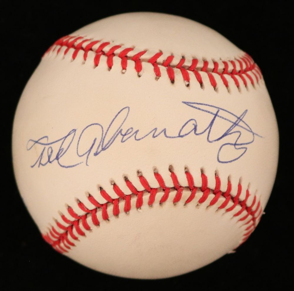 Rawlings Official American League baseball. Hand-signed in blue ink pen by Ted Abernathy (D. 2004, Cubs).