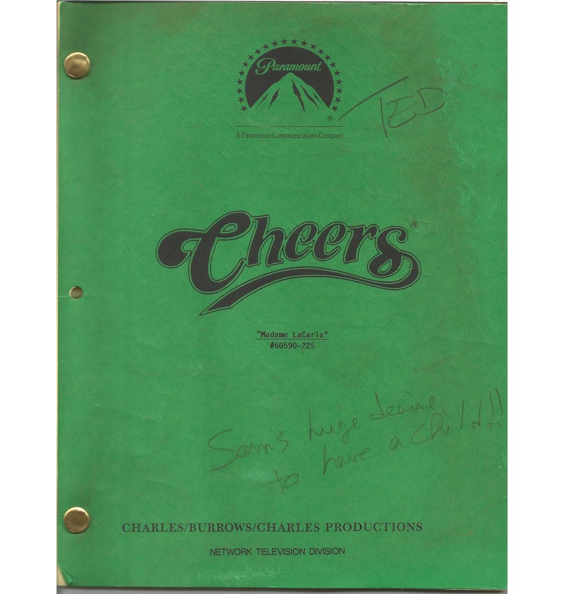 Set used script for the episode Madame LaCarla that was Ted Danson’s personal script. Signed on the cover Ted, a used script donated later to charity, it also has notes on the front he wrote concerning his motivation “Sam’s huge desire to have a child”