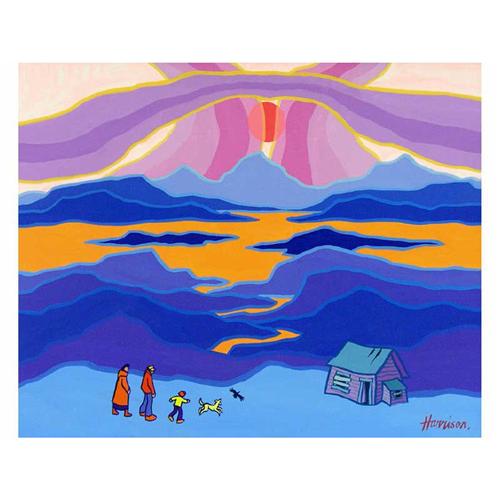 [Canadian b. 1926] EVENING LAKE; 1987 Acrylic on canvas 16 x 20 in. Signed, titled & dated.