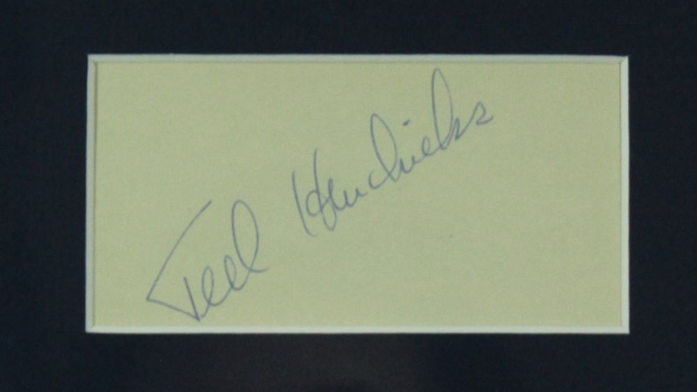 Index card has been hand-signed in blue ball-point pen and custom framed with an 8x10 photo. The display is matted and framed to 11x14. Autograph includes a Pristine Auction LOA and lifetime guarantee for authenticity purposes.