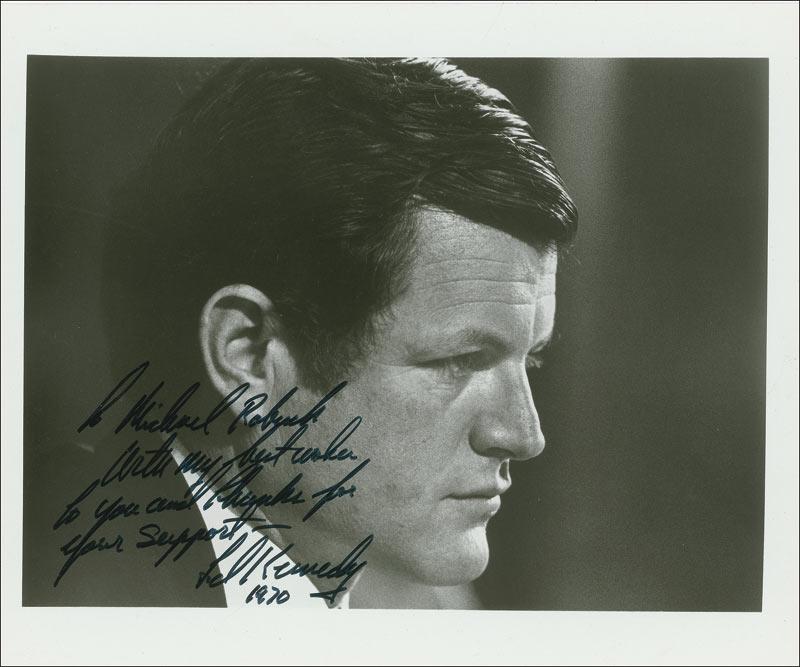 Two glossy photos, one 8 x 10 and one 10 x 8, signed and inscribed in blue and black felt tip respectively. In fine condition, with a few minor surface marks and dings.