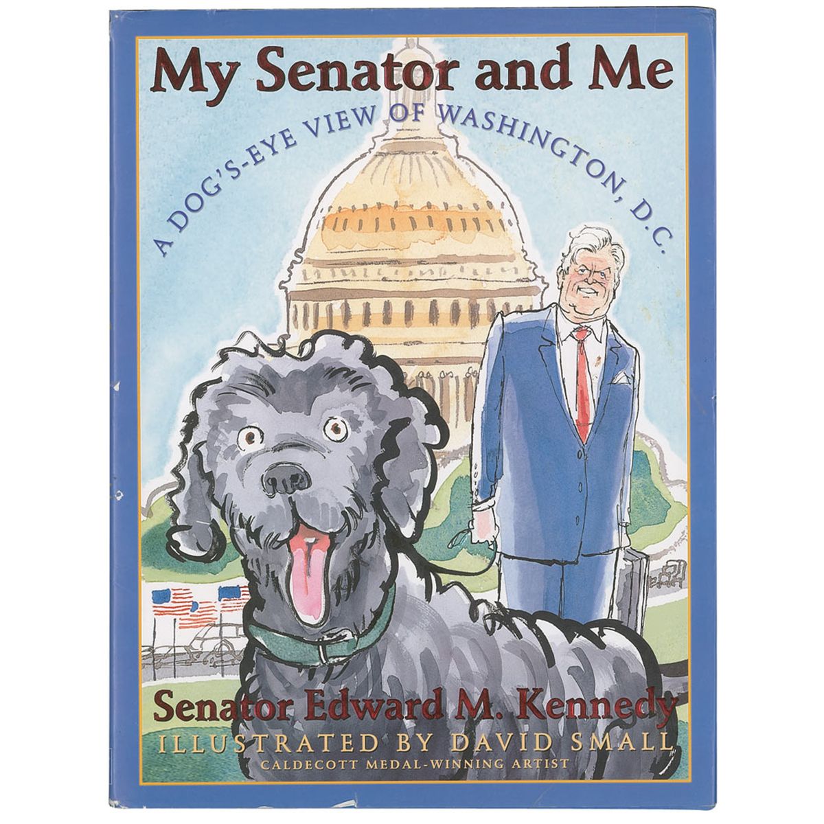 Signed book: My Senator and Me: A Dog’s-Eye View of Washington, D. C. First edition. NY: Scholastic Press, 2006. Hardcover with dustjacket, 9.5 x 12.25. Signed on the first free end page in black felt tip, “My best, Ted Kennedy,” along with Splash’s pawprint. In fine condition, with some light wear and scattered tears to the edge of the dustjacket.