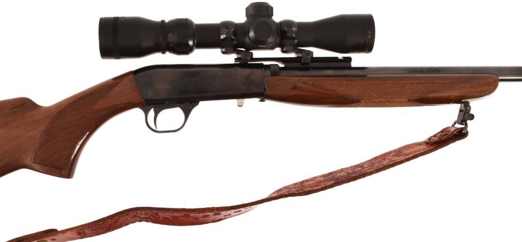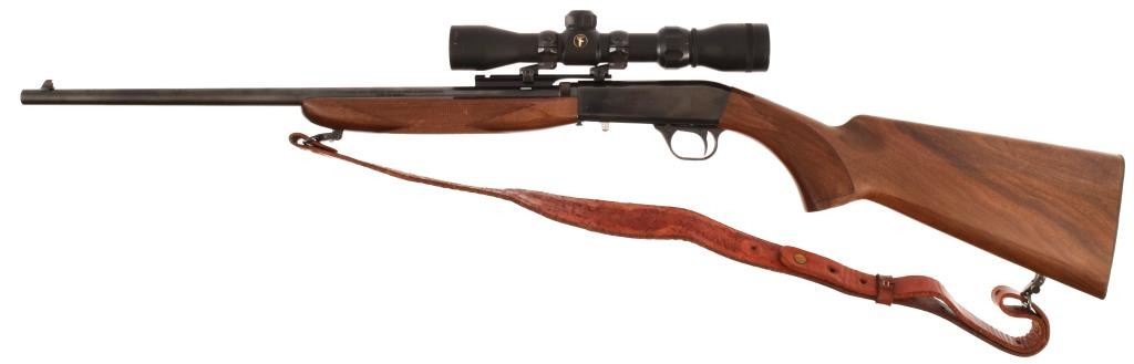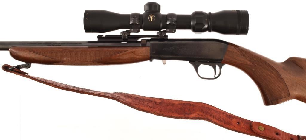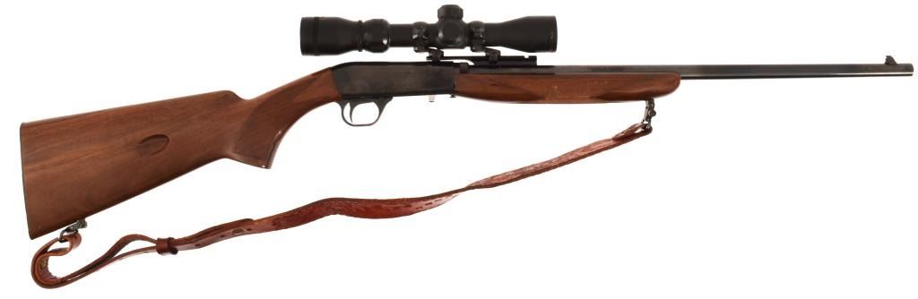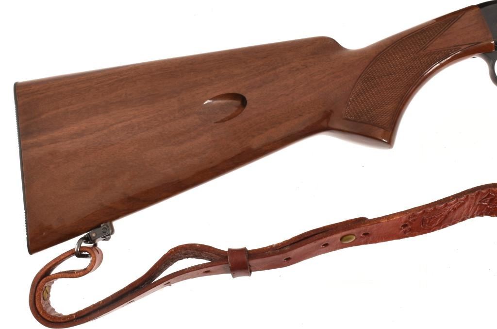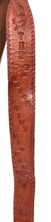 19" Barrel. Tasco scope. "Ted Motor City Mad Man." Stamped on leather strap.