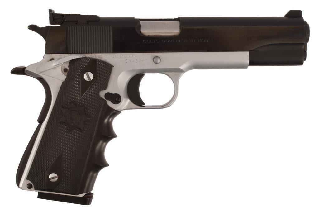 Slide engraved "Customized by Frank Paris". 4.75" barrel, Bianchi grip, Bo-Mar sights.