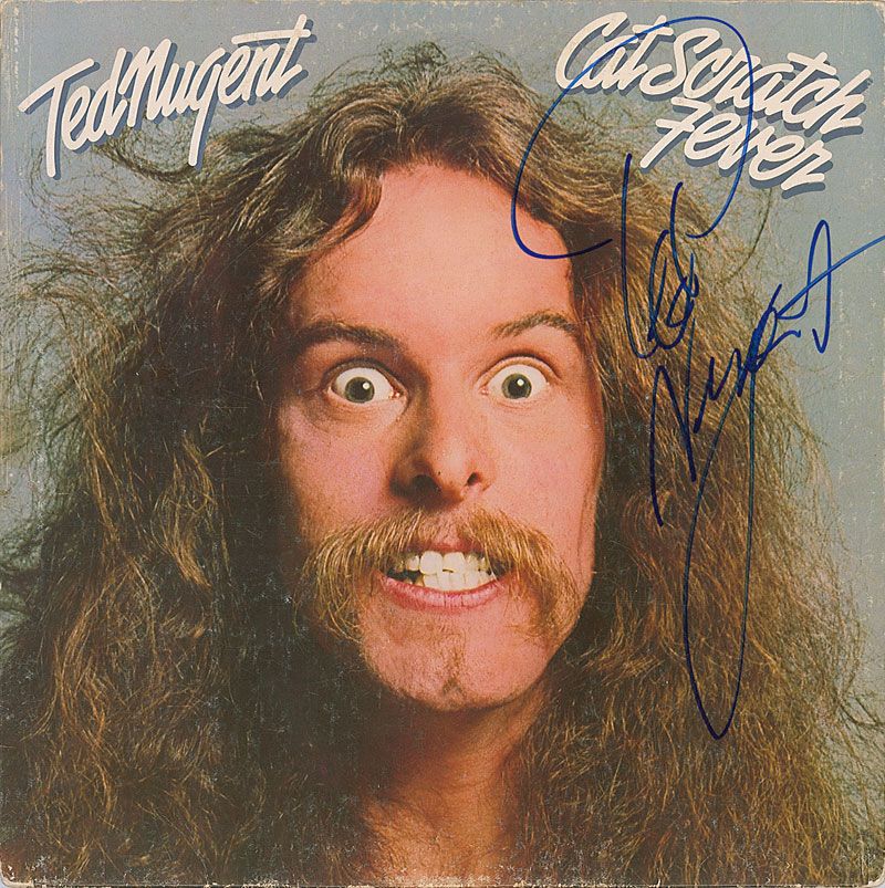 Cat Scratch Fever album signed on the front cover in blue felt tip. Scattered surface wear and rubbing, light edge wear, and scattered creases, otherwise fine condition. The record is included.