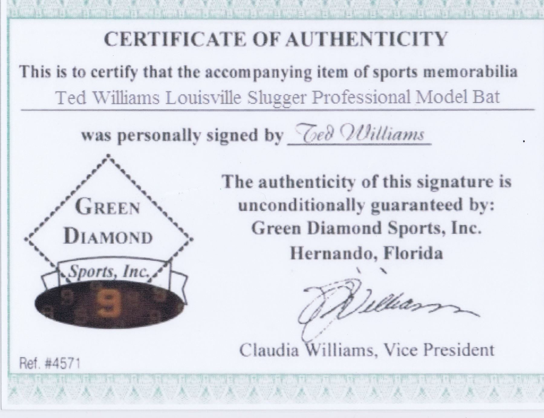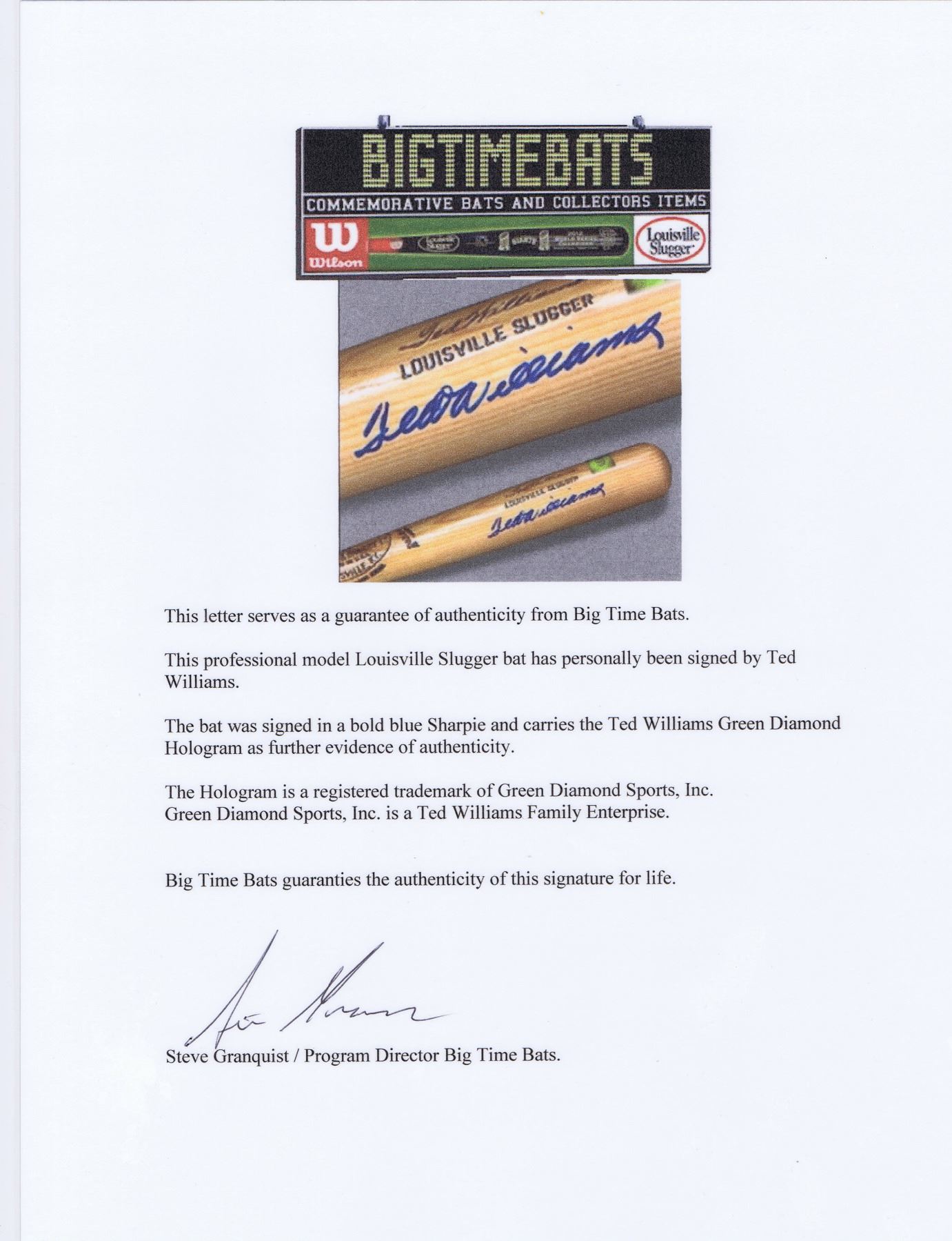 Ted Williams Autograph Bat